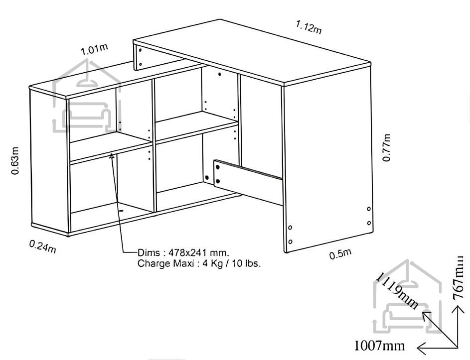 Praktisches Design: Ausgestattet mit 18 mm und 15 mm dicken Spanplatten bietet der Tisch Stabilität und Langlebigkeit. Die vier niedrigeren, schmalen offenen Regale auf einer Seite sind optimal zur Aufbewahrung Ihrer wichtigsten Büromaterialien geeignet.