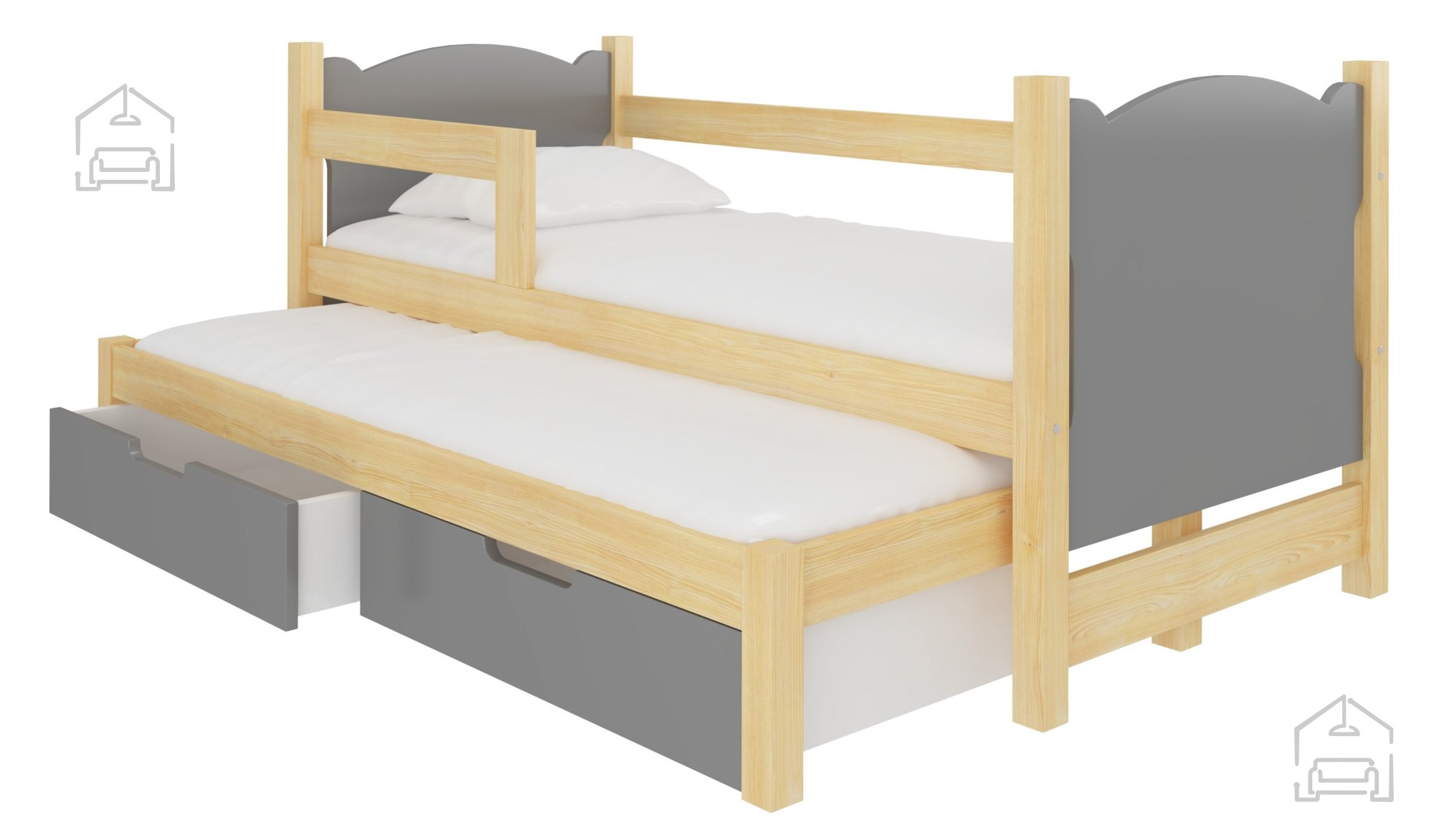 Die perfekte Lösung für jedes Kinder- oder Jugendzimmer ist gut durchdachtes Möbel, das Komfort, Funktionalität und Sicherheit vereint. Genau deshalb ist dieses Bett eine hervorragende Wahl für Eltern, die ihren Kindern einen erholsamen Schlaf ermöglichen und gleichzeitig Platz im Zimmer sparen möchten. Gefertigt aus robustem Kiefernholz, bleibt es lange stabil und behält seine schöne Optik. Zusätzlich verfügt es über eine praktische Zusatzliege sowie geräumige Schubladen, die für Ordnung und Übersicht sorgen. Mit seiner grauen Farbe und dem modernen Design fügt es sich harmonisch in jedes Wohnkonzept ein – ganz gleich, welchen Einrichtungsstil Sie bevorzugen.