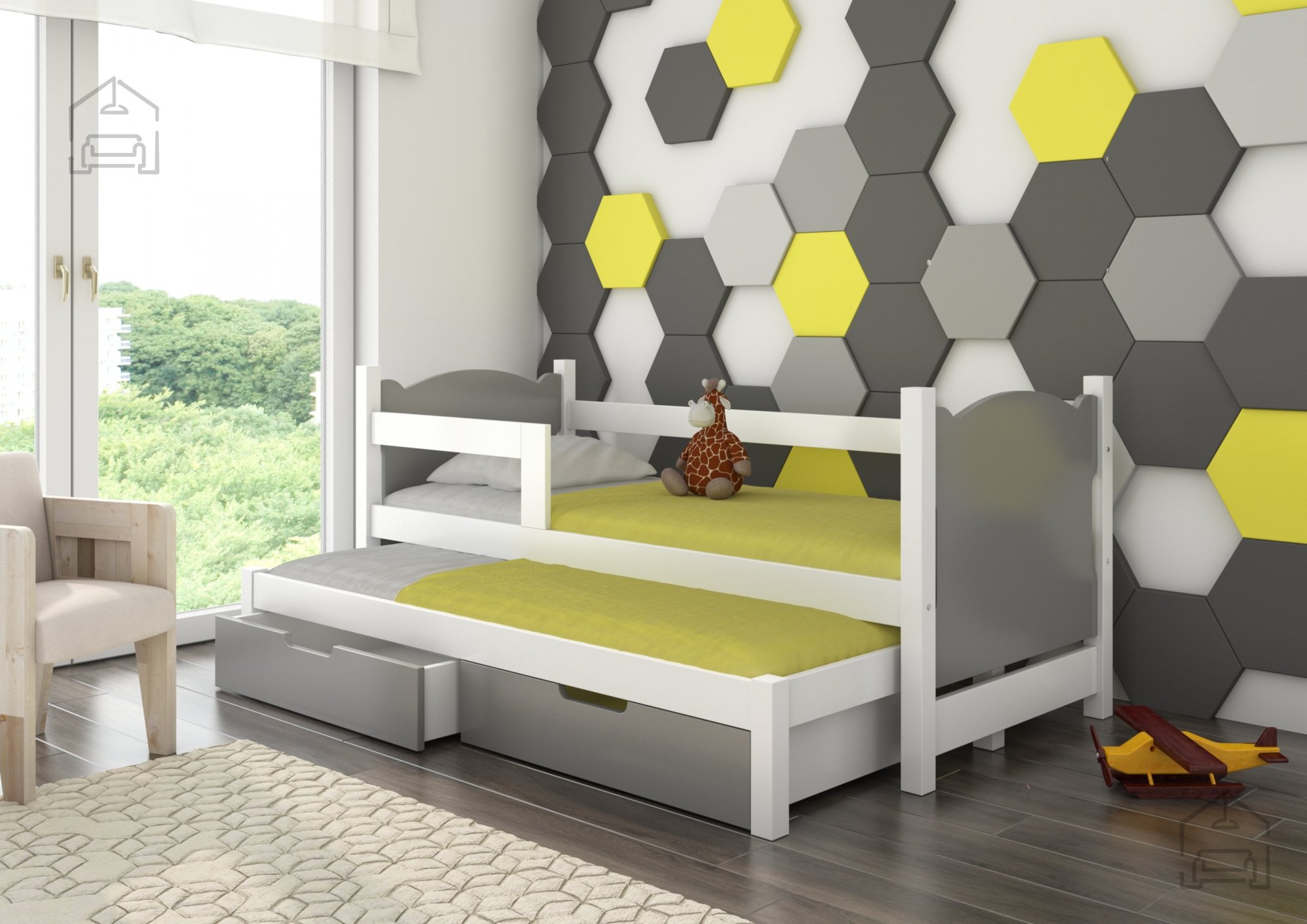 Elegante und praktische Lösung für jedes Kinderzimmer – dieses Bett mit kompakter Bauweise und zusätzlicher Liegefläche ist die perfekte Wahl für Eltern, die Funktionalität, Sicherheit und modernes Design verbinden möchten. Die durchdachte Konstruktion sorgt für erholsamen Schlaf und spart gleichzeitig wertvollen Platz im Zimmer. Dank des schlichten Designs in Weiß und Grau lässt es sich mühelos mit unterschiedlichen Einrichtungsstilen kombinieren – von klassisch bis modern.