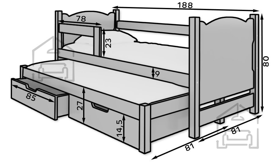 Das Bett eignet sich sowohl für Buben als auch für Mädchen und kann mit verschiedenen Dekorationen und Textilien ergänzt werden, die die Persönlichkeit Ihres Kindes widerspiegeln. Dank seiner Vielseitigkeit bleibt es über viele Jahre hinweg praktisch und nutzbar – auch wenn Ihr Kind älter wird und sich seine Bedürfnisse verändern.