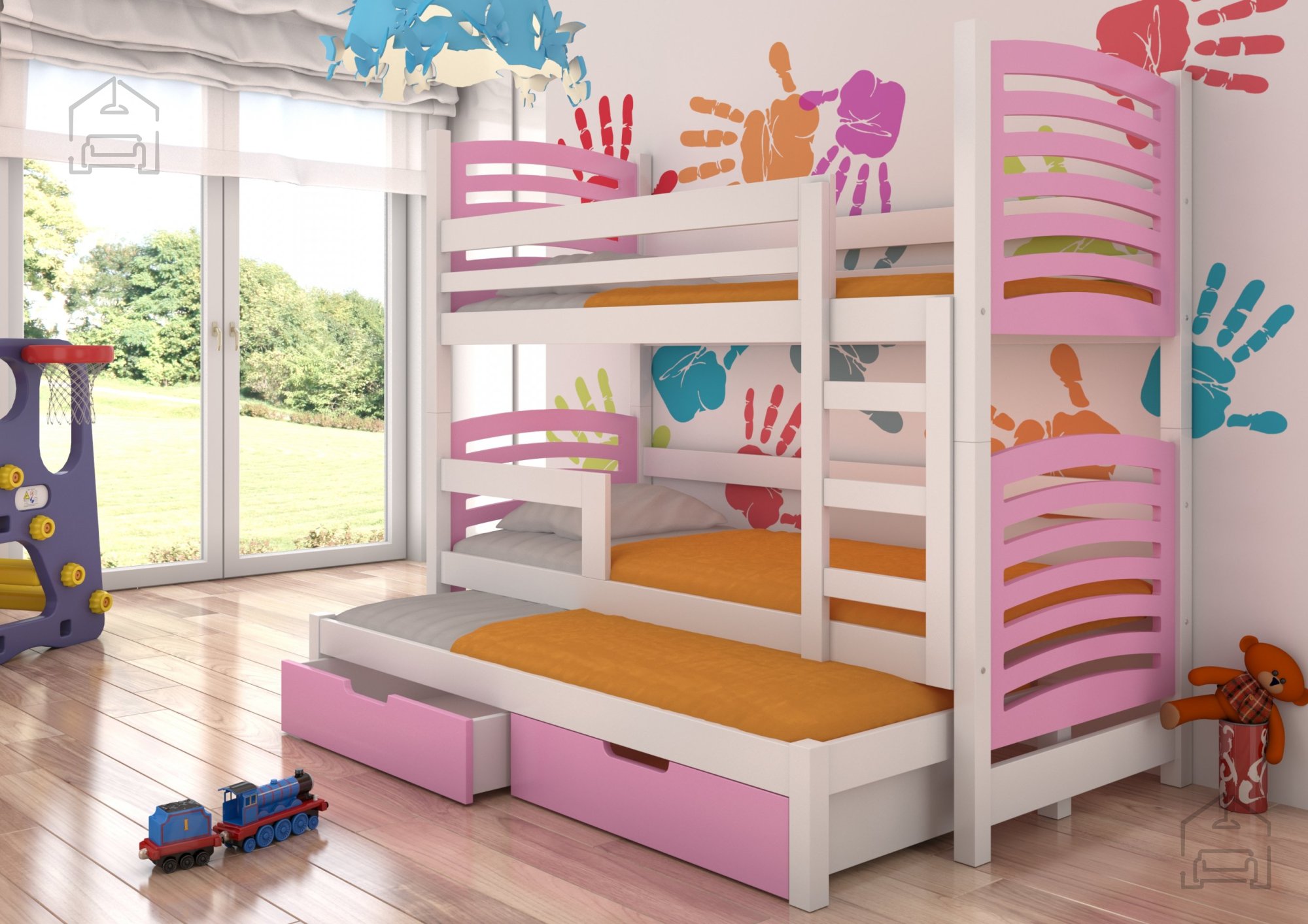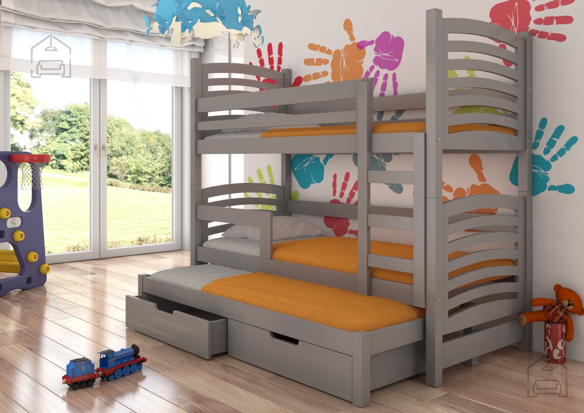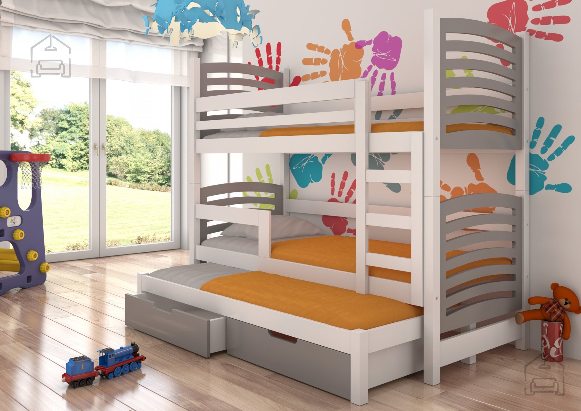 Wenn Sie eine hochwertige, sichere und zugleich praktische Lösung für das Kinderzimmer suchen, ist dieses Etagenbett genau das Richtige. Es vereint modernes Design, Funktionalität und eine robuste Verarbeitung, die Ihren Kindern gemütlichen Schlafkomfort bietet und Ihnen den Alltag erleichtert. Dank der durchdachten Konstruktion eignet es sich besonders gut für kleinere Räume, da es mehrere Funktionen in einem Möbelstück vereint – ein bequemes Bett, ein zusätzliches Gästebett und geräumige Schubladen zum Verstauen.