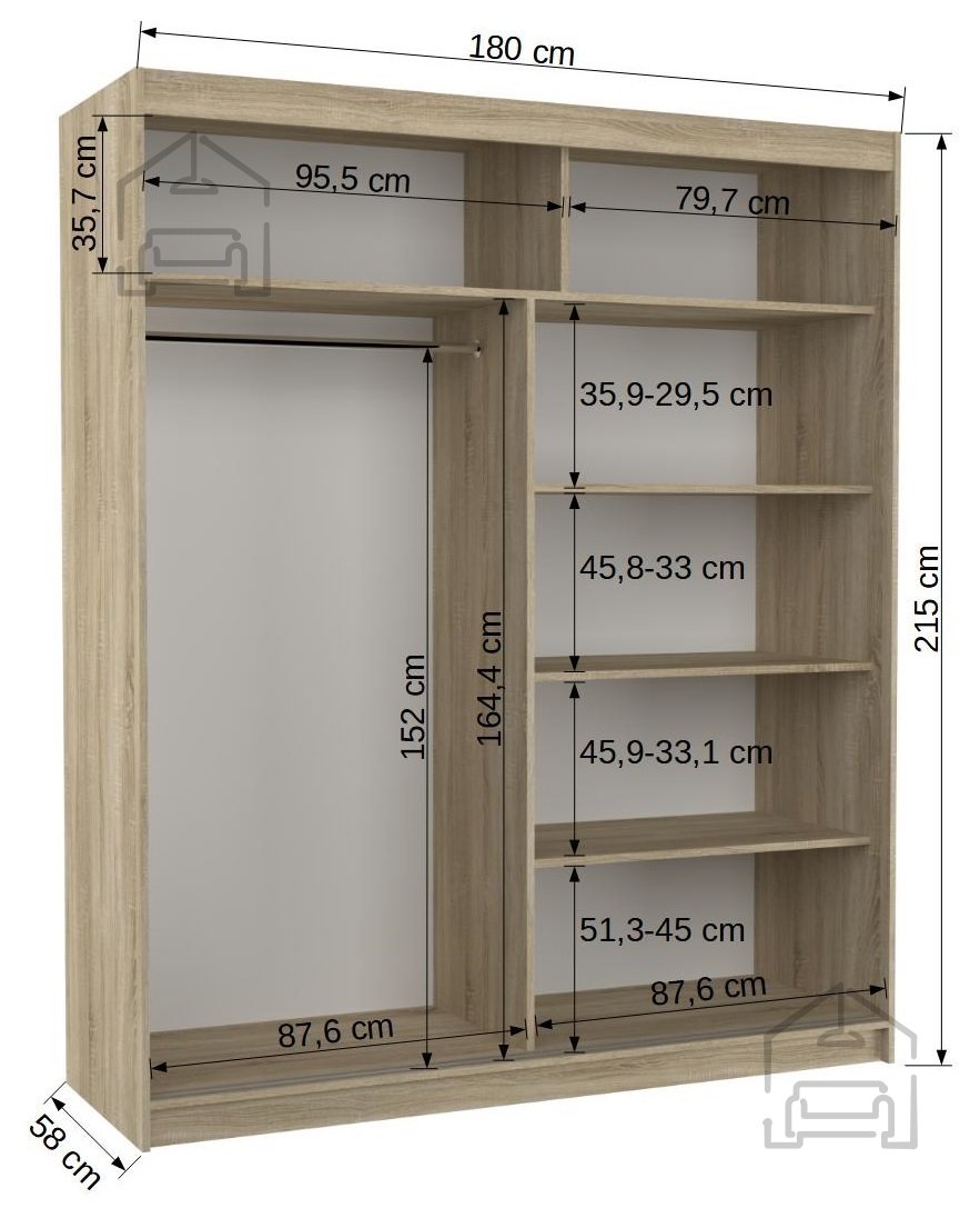 Gerade heute, wo das Zuhause immer mehr zum Ort der Ruhe und Ordnung wird, spielt die Wahl des richtigen Kleiderschranks eine große Rolle. Dieses Modell vereint alles, was Sie brauchen – viel Platz, praktische Aufteilung und ein ansprechendes Design. Mit seiner Höhe von 215 cm nutzt er den Raum optimal aus, und die Schiebetüren sorgen dafür, dass auch kleinere Zimmer offen und ordentlich wirken. Zudem wird der Schrank in der renommierten europäischen Fabrik ADRK in Polen hergestellt – ein Garant für Qualität und sorgfältige Verarbeitung.