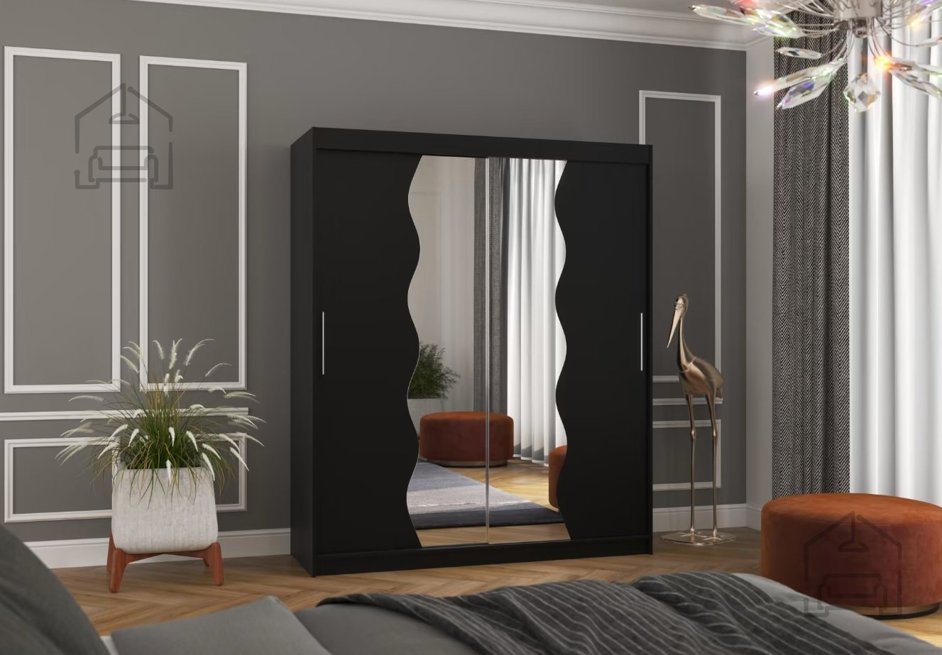 Der Kleiderschrank Kansas ist mit Schiebetüren auf hochwertigen Aluminiumschienen ausgestattet, wodurch sich die Türen leichtgängig und geräuscharm öffnen lassen. Diese Lösung ist besonders praktisch für kleinere Räume, da kein zusätzlicher Platz zum Öffnen der Türen benötigt wird. Innen verfügt der Schrank über eine stabile Kleiderstange für Hemden, Kleider und Mäntel sowie mehrere geräumige Ablagefächer für Pullover, Bettwäsche oder Aufbewahrungsboxen. Optional kann der Schrank mit einer LED-Beleuchtung ergänzt werden, die das Auffinden von Kleidung erleichtert und zugleich eine angenehme Atmosphäre schafft.