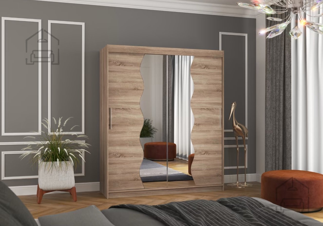 Der Schrank besteht aus robustem Span- und MDF-Plattenmaterial, was Stabilität und Beständigkeit im täglichen Gebrauch gewährleistet. Ein besonderes Highlight ist der große integrierte Spiegel, der den Raum optisch vergrößert und ihm eine elegante Note verleiht. Er ist in mehreren Farbvarianten erhältlich – von warmem Sonoma-Eiche über klassisches Weiß und modernes Schwarz bis hin zu edlem Schokoladen- oder trendigem Trüffelton. So lässt sich der Schrank mühelos an unterschiedliche Einrichtungsstile und persönliche Vorlieben anpassen.