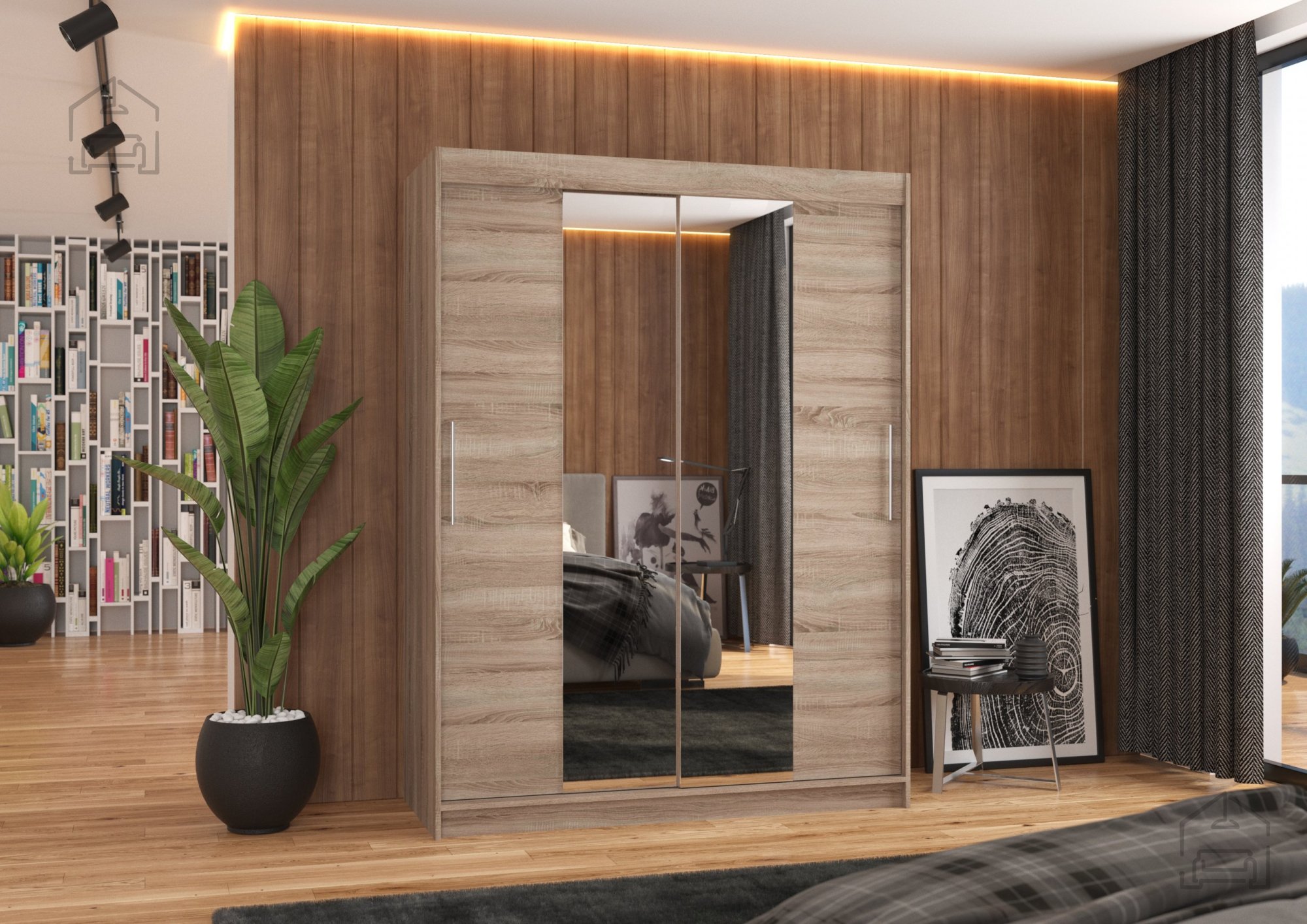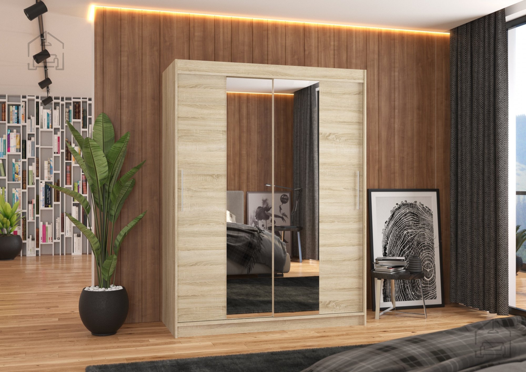 Mit den Maßen 150x58x200 cm nimmt der Schrank genau das richtige Maß an Platz ein und überrascht dennoch mit einem großzügigen Innenraum. Die Schiebetüren sind besonders praktisch – ideal für kleinere Räume, da sie keinen zusätzlichen Platz zum Öffnen benötigen. Zwei Aluminiumführungen sorgen für ein sanftes, geräuschloses Gleiten. Der integrierte Spiegel ist nicht nur ein optisches Highlight, sondern auch äußerst nützlich, da er den Raum größer wirken lässt und einen schnellen Blick auf Ihr Outfit ermöglicht.