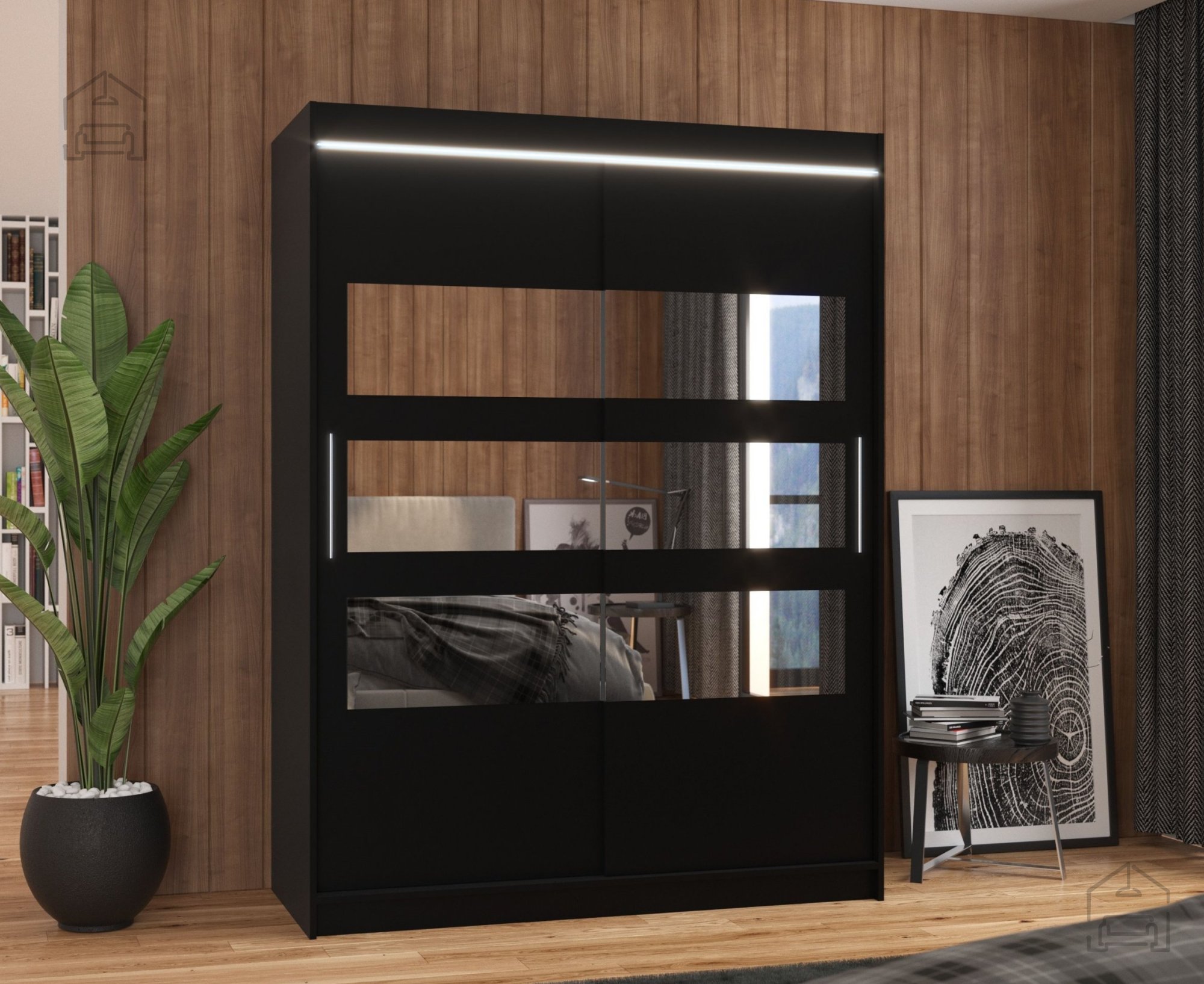 Wer zusätzlichen Komfort und eine besondere Lichtstimmung wünscht, kann den Schrank mit LED-Beleuchtung ausstatten. Das RGB-System mit 15 verschiedenen Farben, Fernbedienung und einfacher Montage sorgt für ein angenehmes Ambiente und erleichtert das Finden der Kleidung, besonders in den Abendstunden.