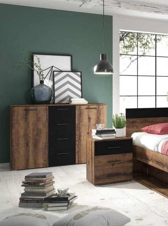 Die Farbkombination aus dunkler Eiche und Schwarz verleiht der Kommode Beta ein modernes und stilvolles Aussehen, das sich mühelos in unterschiedliche Einrichtungsstile einfügt. Ob Ihr Zuhause minimalistisch oder klassisch gestaltet ist – diese Kommode passt sich perfekt an Ihr Ambiente an.