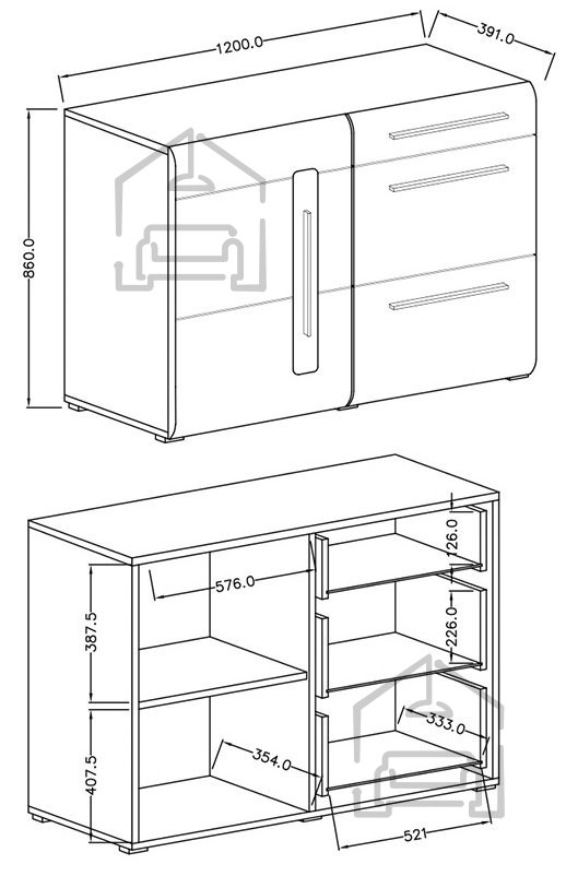 Mit den Maßen 120x39,1x86 cm passt die Kommode perfekt in nahezu jeden Raum – ob ins Wohnzimmer, Schlafzimmer oder den Vorraum. Sie kombiniert drei geräumige Schubladen auf der rechten Seite mit einem Schrankfach links und sorgt so für eine ordentliche und übersichtliche Aufbewahrung Ihrer Dinge.