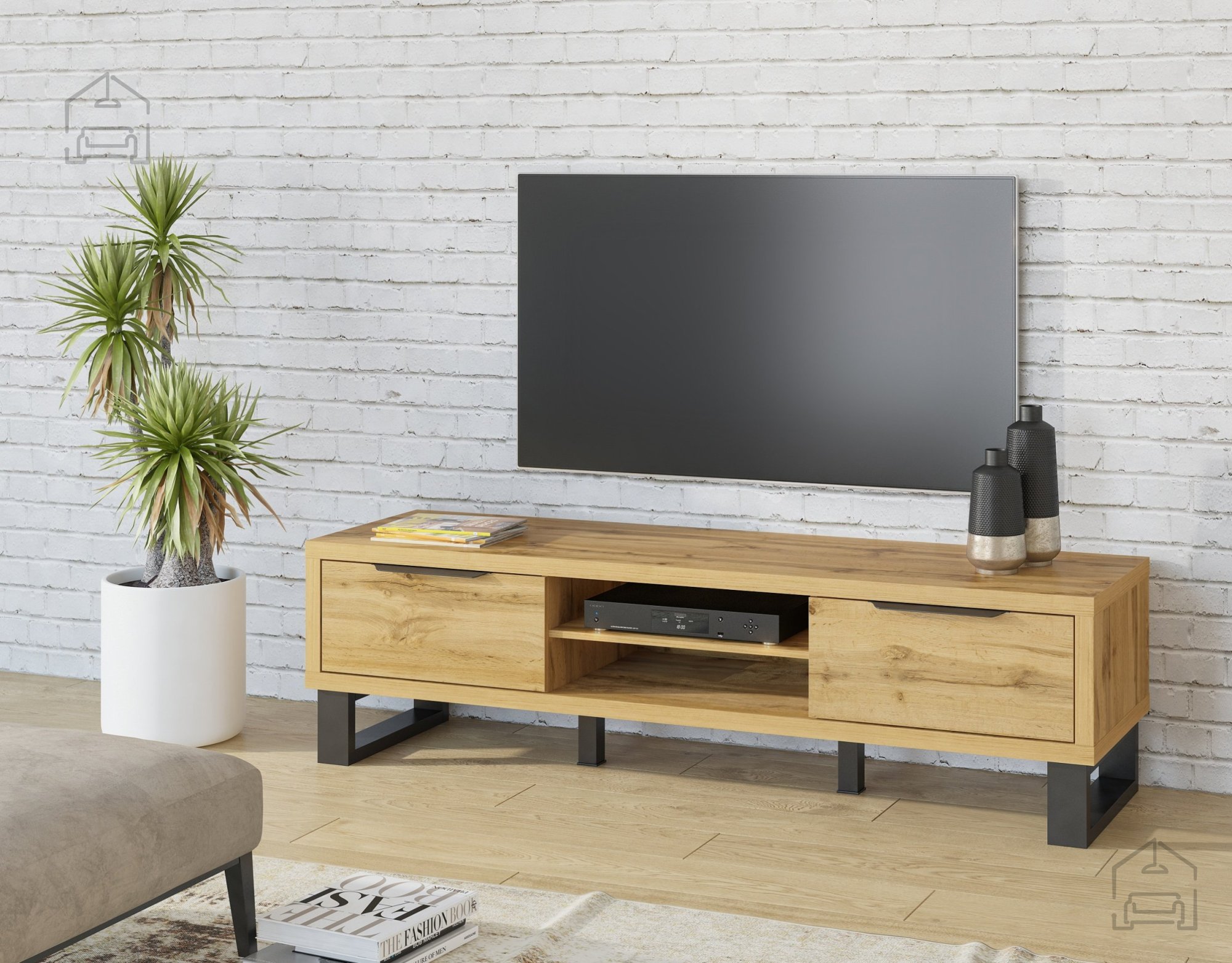 Das TV-Board Halle Groß misst 180x50x50 cm und bietet damit ausreichend Platz für Ihren Fernseher, Multimedia-Geräte und Dekoartikel. Gefertigt ist es aus hochwertigem MDF-Material, das für seine Langlebigkeit und Stabilität bekannt ist. MDF zeichnet sich durch seine Widerstandsfähigkeit gegenüber Feuchtigkeit und Temperaturschwankungen aus – so behält Ihr Möbelstück viele Jahre lang seinen schönen Look.
