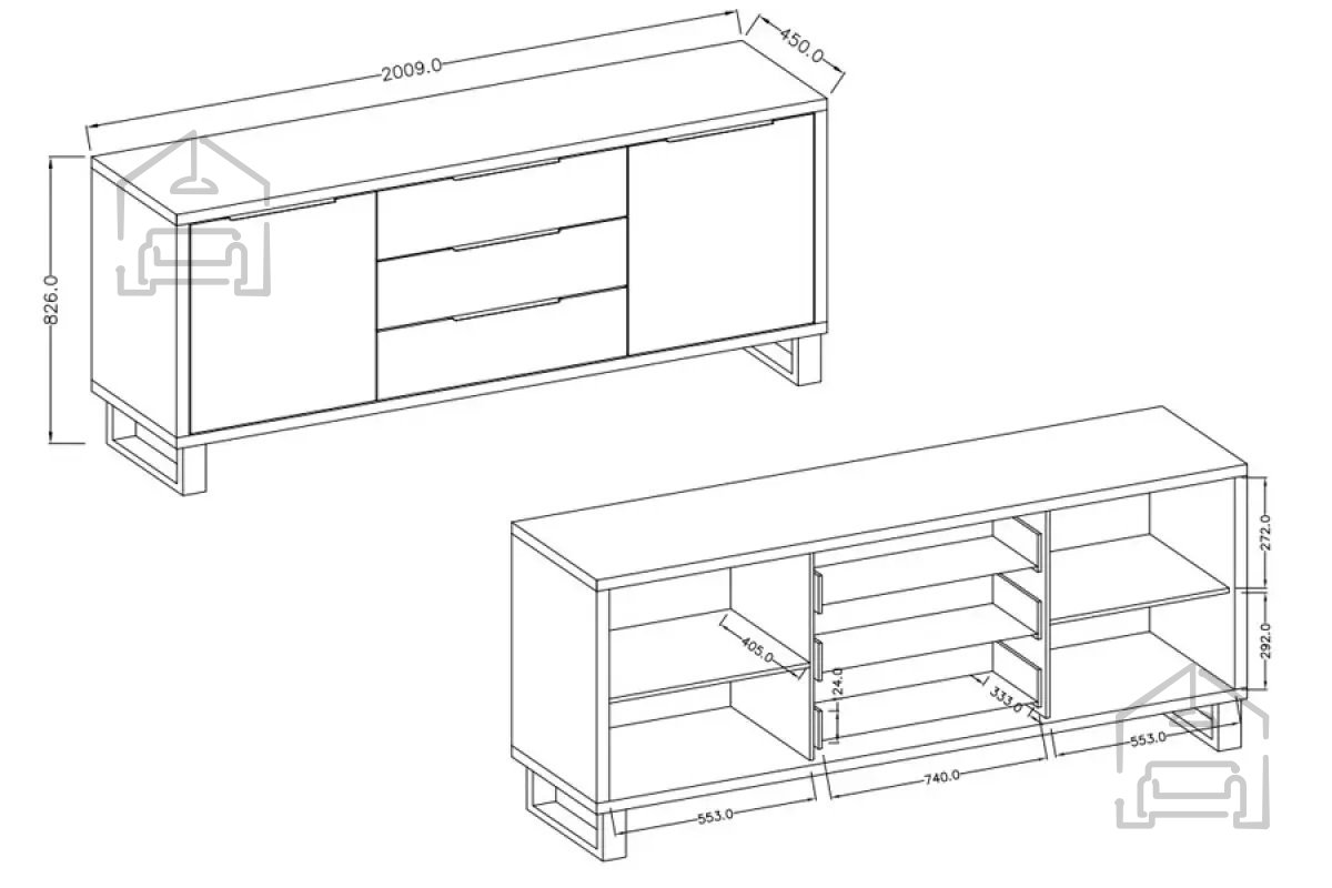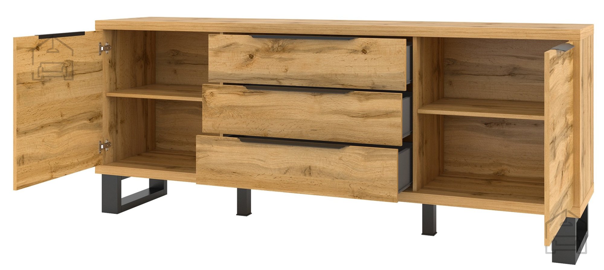 Geräumig und gut organisiert: Mit den Maßen 200,9 x 45 x 82,6 cm bietet die Kommode reichlich Stauraum. Zwei Türen und drei Schubladen ermöglichen eine übersichtliche Aufbewahrung von Geschirr, persönlichen Dingen und vielem mehr – so bleibt Ihr Zuhause stets ordentlich.