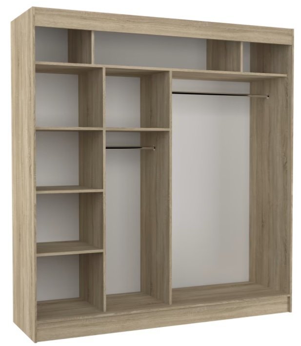 Jedes Zuhause braucht einen Schrank, der nicht nur Stauraum bietet, sondern auch optisch überzeugt. Der Kleiderschrank Balton ist aus hochwertigem MDF-Material gefertigt, was ihm Stabilität, Langlebigkeit und Robustheit verleiht. Die Schiebetüren auf Aluminium-Schienen lassen sich leise und leichtgängig öffnen und sparen dabei Platz im Vergleich zu herkömmlichen Drehtüren – eine ideale Lösung für kleinere Räume oder moderne, minimalistische Einrichtungen.