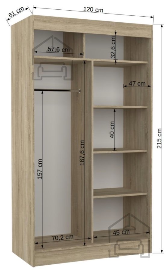 Jedes Zuhause braucht eine durchdachte Aufbewahrungslösung, die Funktionalität, Stil und Qualität vereint. Der Kleiderschrank mit Schiebetüren Karen ist die ideale Wahl für alle, die mehr Ordnung, Eleganz und praktische Nutzung in ihren Wohnraum bringen möchten. Mit einer Breite von 120 cm, einer Tiefe von 61 cm und einer Höhe von 215 cm bietet er großzügigen Stauraum und fügt sich dank seines modernen Designs harmonisch in verschiedene Einrichtungsstile ein.