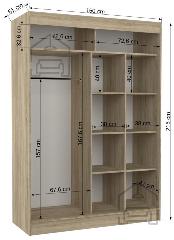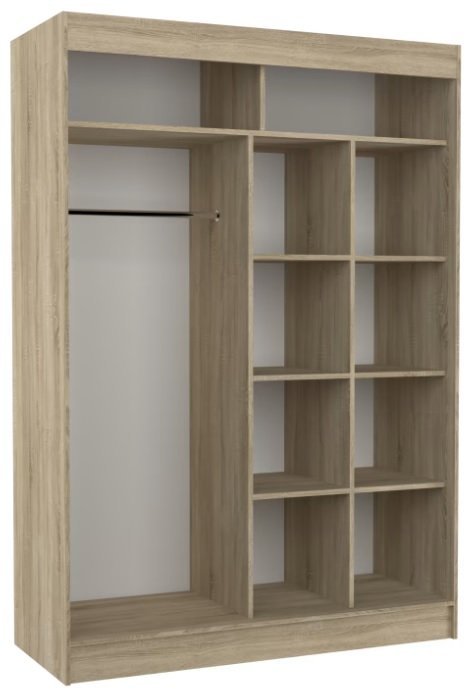 Wenn Sie einen Kleiderschrank suchen, der Funktionalität, Qualität und ein ansprechendes Design vereint, ist dieses Modell genau das Richtige für Sie. Investieren Sie in ein Möbelstück, das Ihr Zuhause praktischer, schöner und wohnlicher macht. Der Schrank Karen wird Sie Tag für Tag begeistern – vom ersten Griff an die Schiebetüren am Morgen bis zum abendlichen Verstauen Ihrer Kleidung.