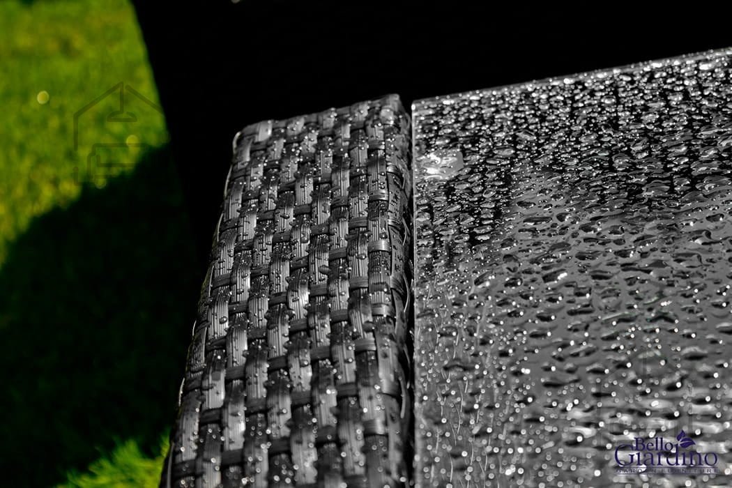 Dieses Möbelset besteht aus innovativem Kunststoffgeflecht.
