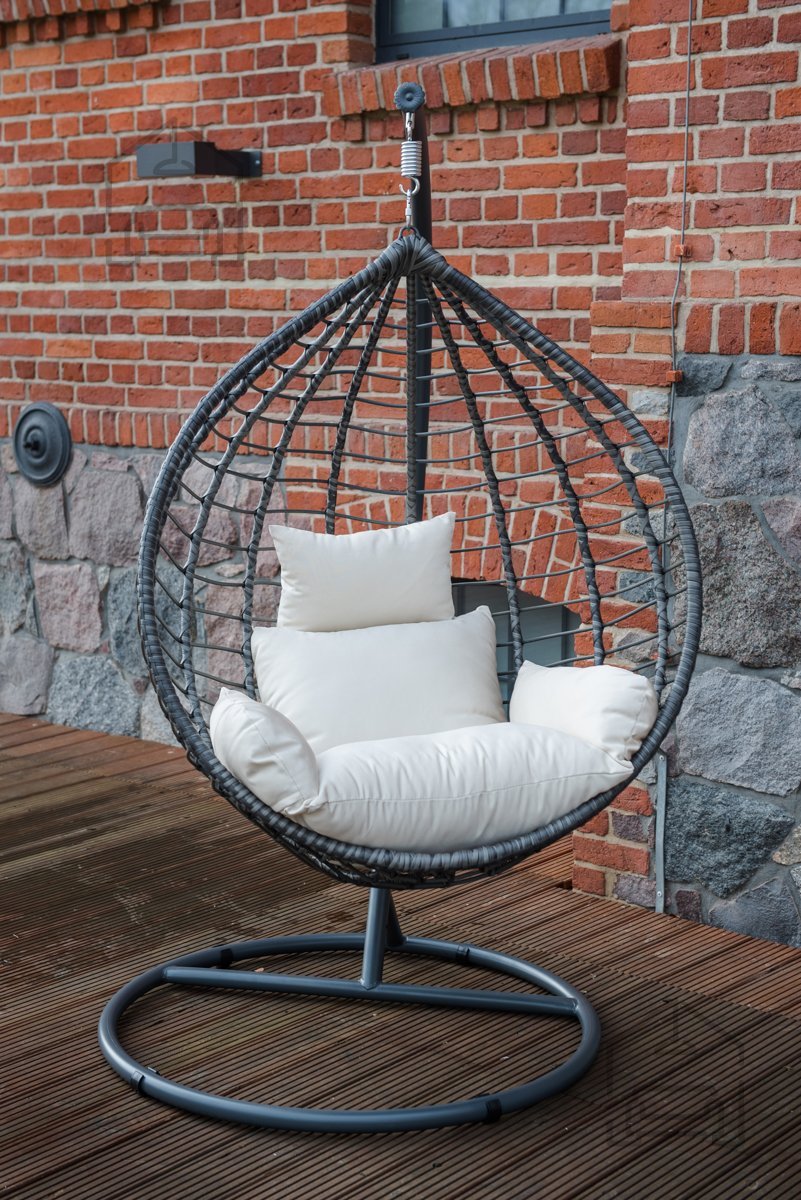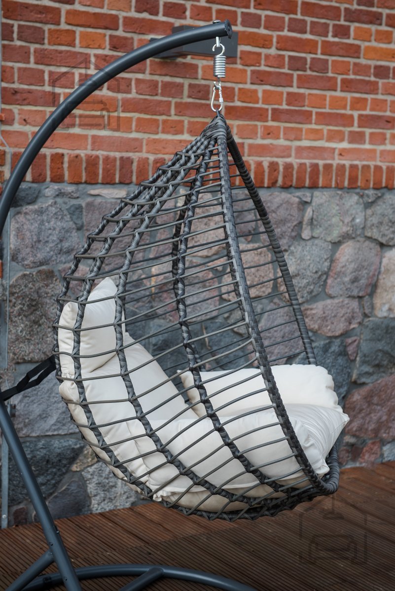 Wenn Sie sich nach einem ruhigen Plätzchen sehnen, um sanft im Wind zu schaukeln, ist der hängende Gartensessel Spesso das ideale Rückzugsort zum Entspannen. Sein Design verbindet die Ästhetik moderner Outdoor-Bereiche mit dem Komfort eines gemütlichen Wohnzimmers. Der Sessel ist aus hochwertigem Kunststoffgeflecht gefertigt, auch bekannt als Technorattan, das durch seine hohe Beständigkeit gegen UV-Strahlen, Feuchtigkeit und Frost überzeugt. Dank dieser Eigenschaften eignet er sich für den ganzjährigen Einsatz im Freien – auf der Terrasse, am Balkon oder im Wintergarten.
