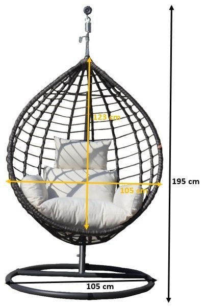 Das Modell Spesso - LO.018.001 hat einen Durchmesser von 105 cm und eine Höhe von 195 cm – ausreichend Platz für bequemes Sitzen und entspanntes Liegen. Das Geflecht besteht aus Strängen mit einer Stärke von 7–8 x 1,2 mm, was Stabilität und gleichzeitig eine leichte, luftige Optik bietet. Trotz seiner filigranen Erscheinung ist das Gestell robust und formstabil, sodass der Sessel auch nach Jahren seine Form behält. Der Metallrahmen ist mit einer speziellen Schutzbeschichtung versehen, die Rost verhindert und das gepflegte Erscheinungsbild bei jedem Wetter bewahrt.