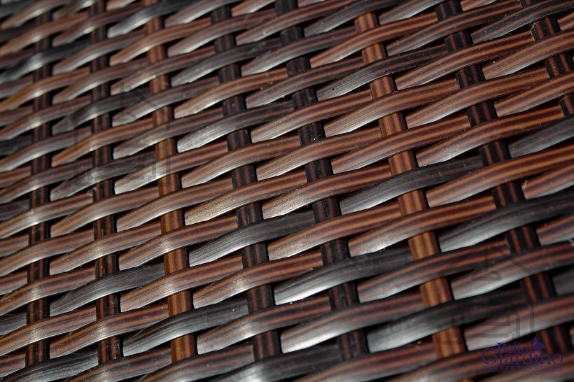 Das Grundgestell des Tisches besteht aus leichtem Aluminium, das Stabilität bietet und zugleich ein einfaches Umstellen auf Terrasse oder im Garten ermöglicht. Das Metall ist korrosionsbeständig und rostfrei, sodass der Tisch auch nach mehreren Saisonen im Freien seine Form und Festigkeit behält. Die Oberfläche ist mit Technorattan geflochten – einem synthetischen Material, das dem natürlichen Rattan ähnelt, ihn jedoch in puncto Widerstandsfähigkeit deutlich übertrifft. Mit einer Faserstärke von 7–8x1,2 mm und präziser Verarbeitung überzeugt es durch hohe Flexibilität sowie UV-, Feuchtigkeits- und Frostbeständigkeit. Dadurch bleibt die dunkelbraune Farbe (Code 001) auch bei intensiver Sonneneinstrahlung lange erhalten.