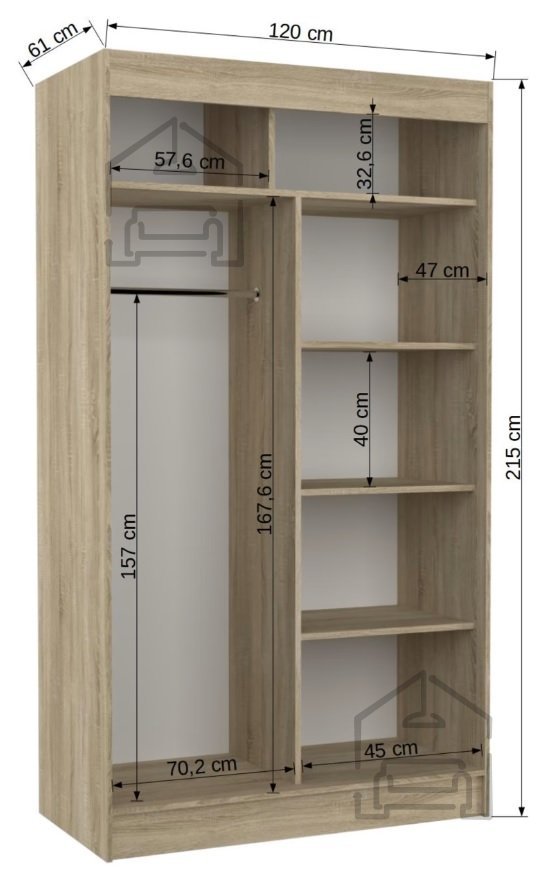 Wenn Sie einen Schrank suchen, der hochwertige Verarbeitung, modernes Design und praktische Aufteilung vereint, ist dieses Modell die ideale Wahl. Durch seine Größe passt es sowohl in größere Schlafzimmer als auch in kleinere Wohnräume, in denen jeder Zentimeter zählt. Besonders in kleineren Räumen sind Schiebetüren ein großer Vorteil, da sie beim Öffnen keinen zusätzlichen Platz beanspruchen.
