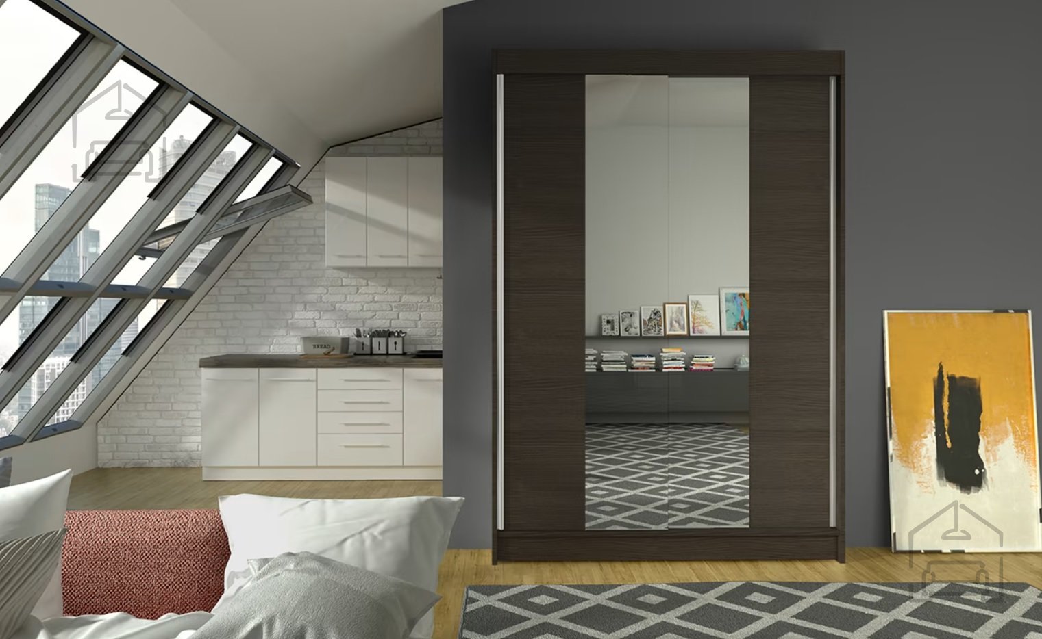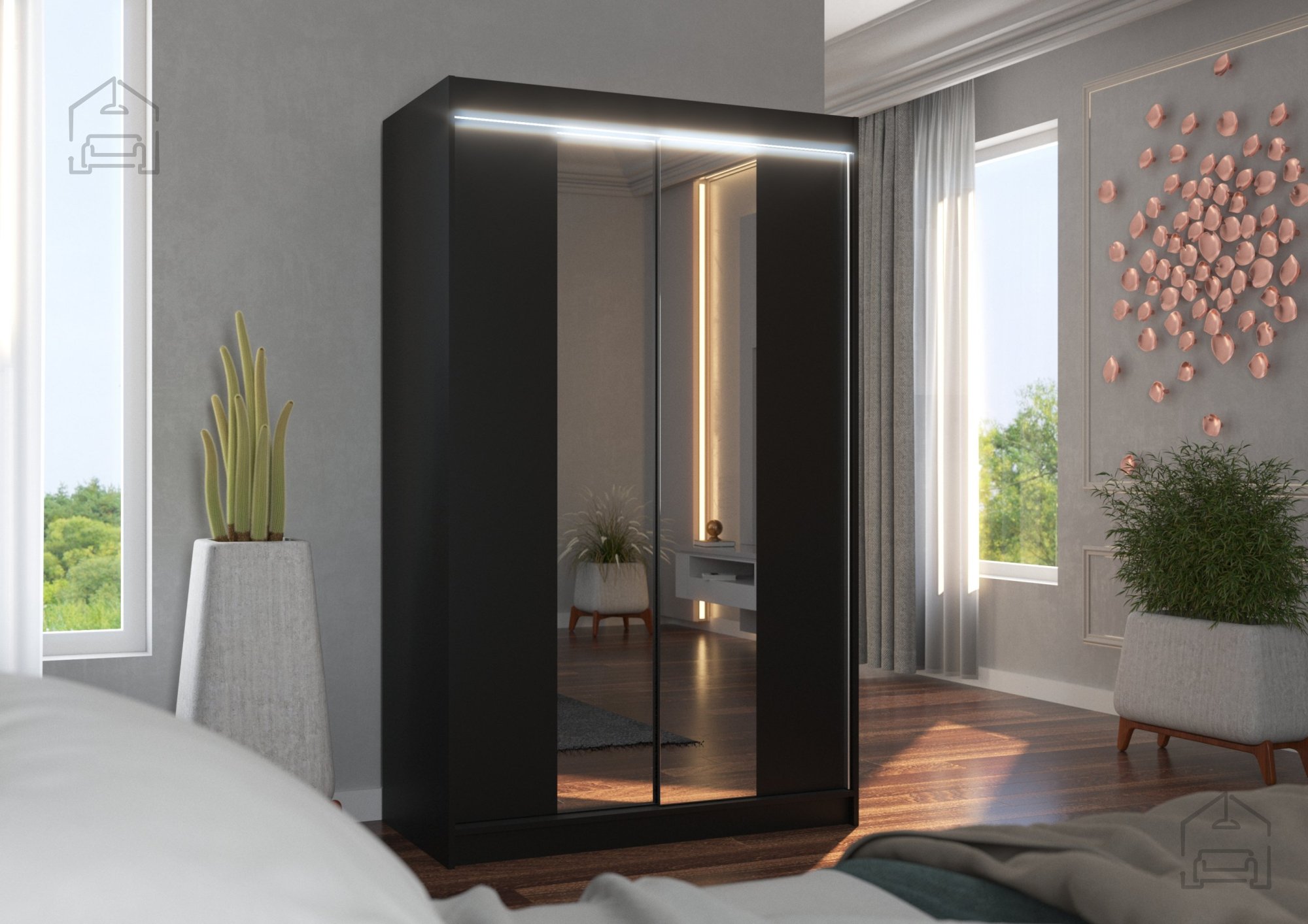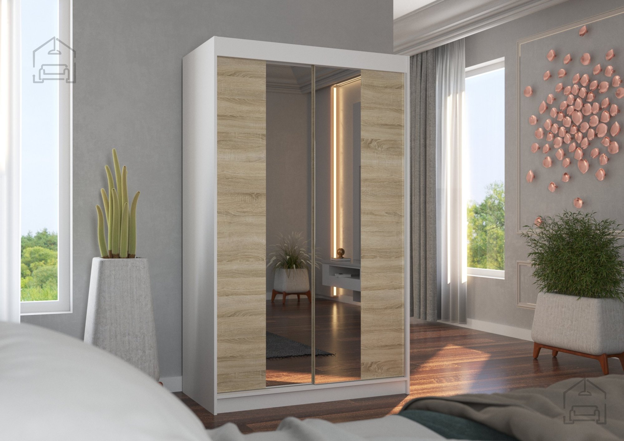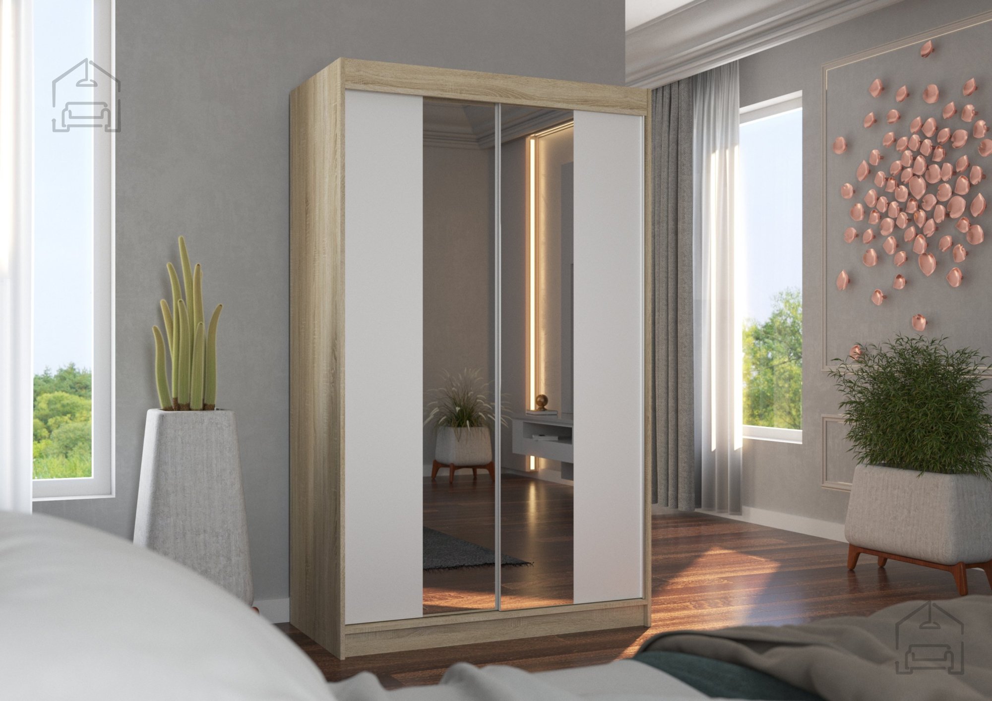 Der Schrank mit den Maßen 120x58x200 cm passt dank seines Designs perfekt in unterschiedliche Räume – ob Schlafzimmer, Vorzimmer oder Ankleide. Durch die Schiebetüren sparen Sie Platz, da kein zusätzlicher Raum zum Öffnen nötig ist. Das ist besonders praktisch in kleineren Wohnungen, wo jeder Zentimeter zählt. Zusätzlich ist der Schrank mit einem großen Spiegel ausgestattet, der den Raum optisch vergrößert und es Ihnen ermöglicht, Ihr Outfit bequem zu überprüfen, bevor Sie das Haus verlassen.
