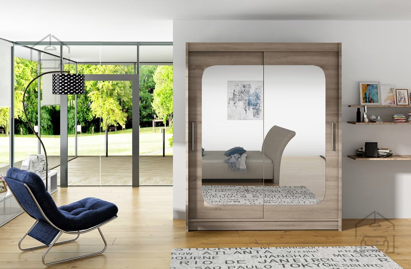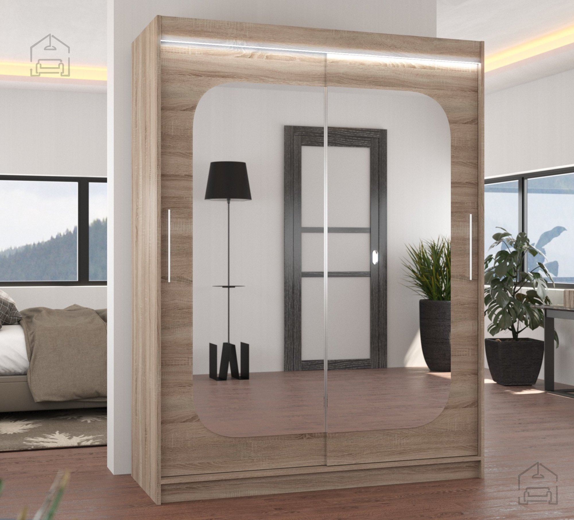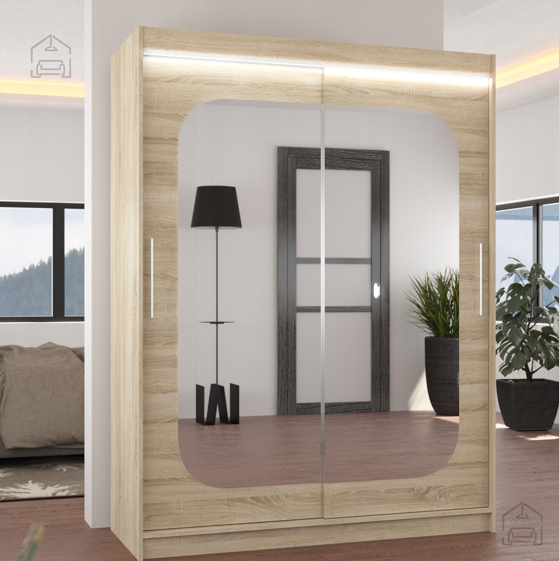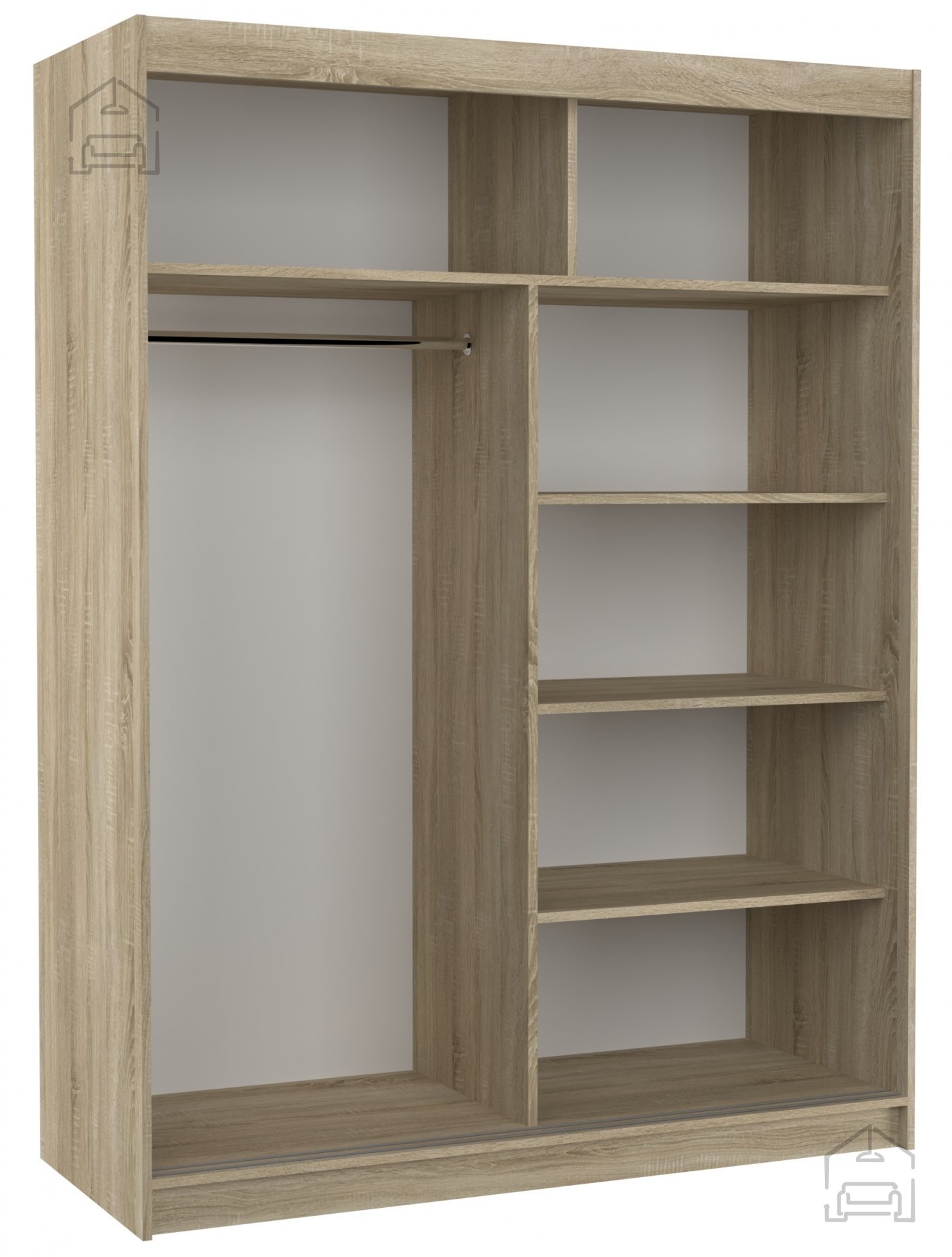 Der Schrank ist so konzipiert, dass er sich harmonisch in unterschiedliche Wohnstile einfügt. Er ist in mehreren modernen Farben erhältlich – von warmem Sonoma-Eiche und edlem Schokoladenton bis hin zu klassischem Weiß und trendigem Trüffel. Dank seiner neutralen Farbpalette lässt er sich leicht mit vorhandenem Mobiliar kombinieren und verleiht dem Raum zugleich ein gepflegtes, elegantes Erscheinungsbild.