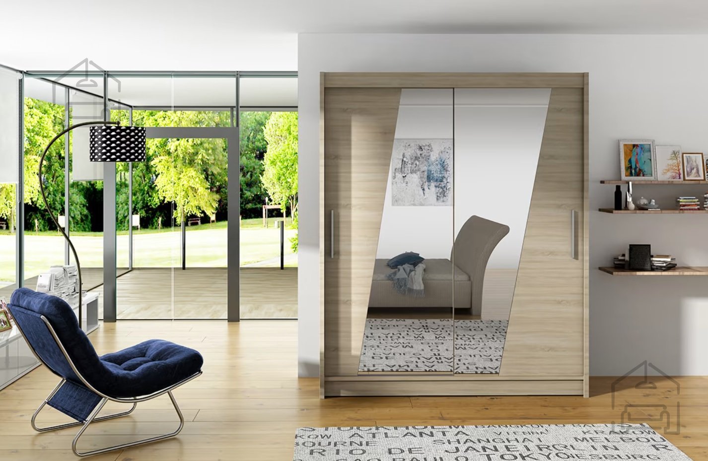 Der Schrank besteht aus hochwertiger Spanplatte und MDF, was für Stabilität und eine lange Lebensdauer sorgt. Besonders ins Auge fallen die Schiebetüren, die sich dank der Aluminiumlaufschienen leicht, leise und zuverlässig bewegen. Der integrierte Spiegel vergrößert den Raum optisch, verleiht ihm einen modernen Touch und ist zudem äußerst praktisch beim täglichen Ankleiden.