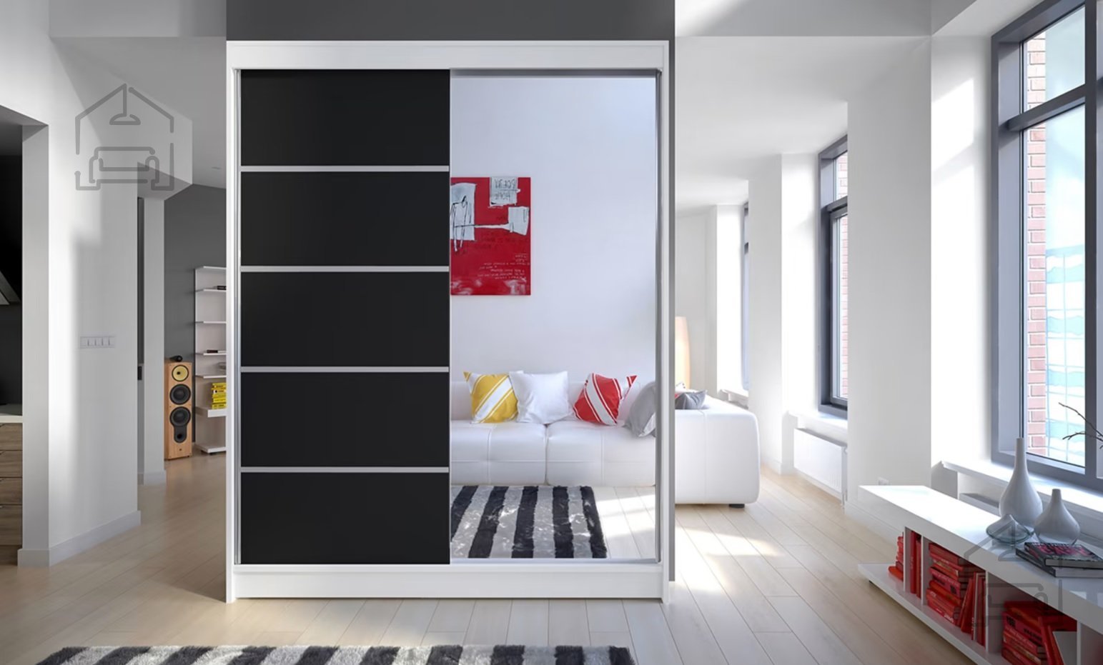 Der Schrank ist so gestaltet, dass er den Anforderungen des modernen Alltags gerecht wird. Die Schiebetüren gleiten sanft auf hochwertigen Aluminiumschienen und sorgen für eine platzsparende Nutzung, da zum Öffnen kein zusätzlicher Raum vor dem Schrank benötigt wird. Das integrierte Spiegelpaneel an der Tür ist beim täglichen Ankleiden besonders praktisch und lässt den Raum optisch größer wirken – ein klarer Vorteil, vor allem in kleineren Wohnungen. Innen ist der Schrank durchdacht aufgeteilt: geräumige Ablagefächer und eine Kleiderstange ermöglichen eine übersichtliche und ordentliche Aufbewahrung Ihrer Kleidung.
