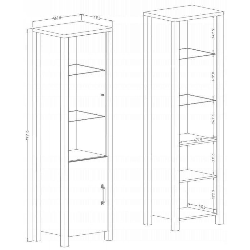 3. Praktischer Stauraum: Mit ihren Maßen von 56 x 43,3 x 191,1 cm bietet die Vitrine reichlich Platz, um Lieblingsstücke, Bücher oder Dekorationen ordentlich zu verstauen. Das schlichte Design ohne überflüssige Verzierungen sorgt dafür, dass sie sich harmonisch in jedes Wohnkonzept einfügt.