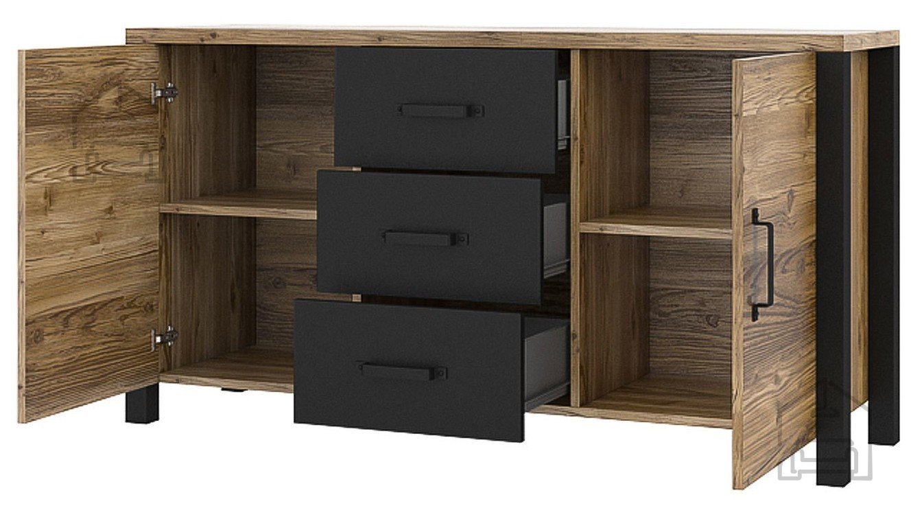 Wählen Sie die Kommode mit Doppeltüren Olin und bringen Sie industrielle Eleganz in Ihr Zuhause – erhältlich bei Moebelundmoebel.at!