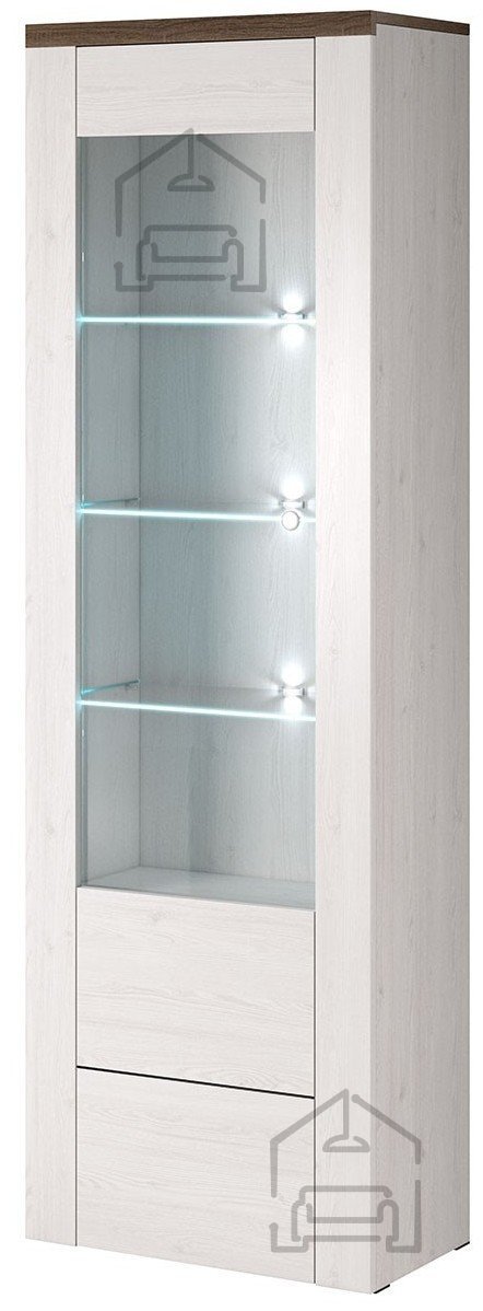1. **Hochwertige Materialien**: MDF sorgt für Stabilität und Widerstandsfähigkeit im täglichen Gebrauch. 2. **Elegantes Design**: Eine harmonische Farbkombination und ein minimalistisches Erscheinungsbild, das in jedes Zuhause passt. 3. **Optionale Beleuchtung**: LED-Beleuchtung für ein noch schöneres Ambiente. 4. **Hergestellt in der EU**: Qualität und Langlebigkeit mit Ursprung in Polen. 5. **Geräumig und funktional**: Bietet ausreichend Platz zum Aufbewahren und Präsentieren persönlicher Gegenstände.