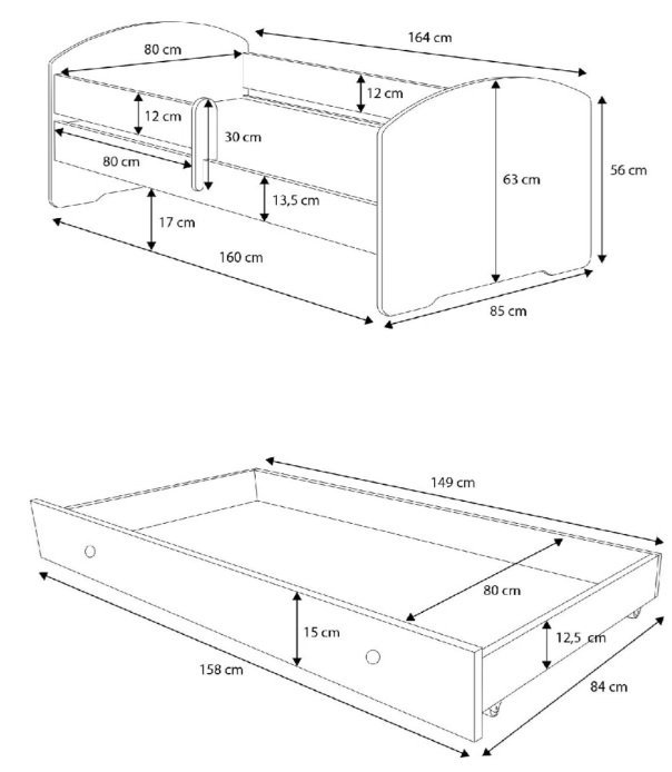 Jedes Kinderzimmer verdient ein Möbelstück, das Sicherheit, Komfort und Alltagstauglichkeit vereint. Genau das bietet dieses bezaubernde Bett mit zusätzlicher Liegefläche, das speziell auf die Bedürfnisse von Kindern und Eltern abgestimmt ist. Das durchdachte Design sorgt für erholsamen Schlaf und gleichzeitig für praktische Nutzung im Alltag. Mit den Maßen von 85x164x63 cm passt es auch perfekt in kleinere Räume – ideal für moderne Familien, die jeden Zentimeter optimal nutzen möchten.
