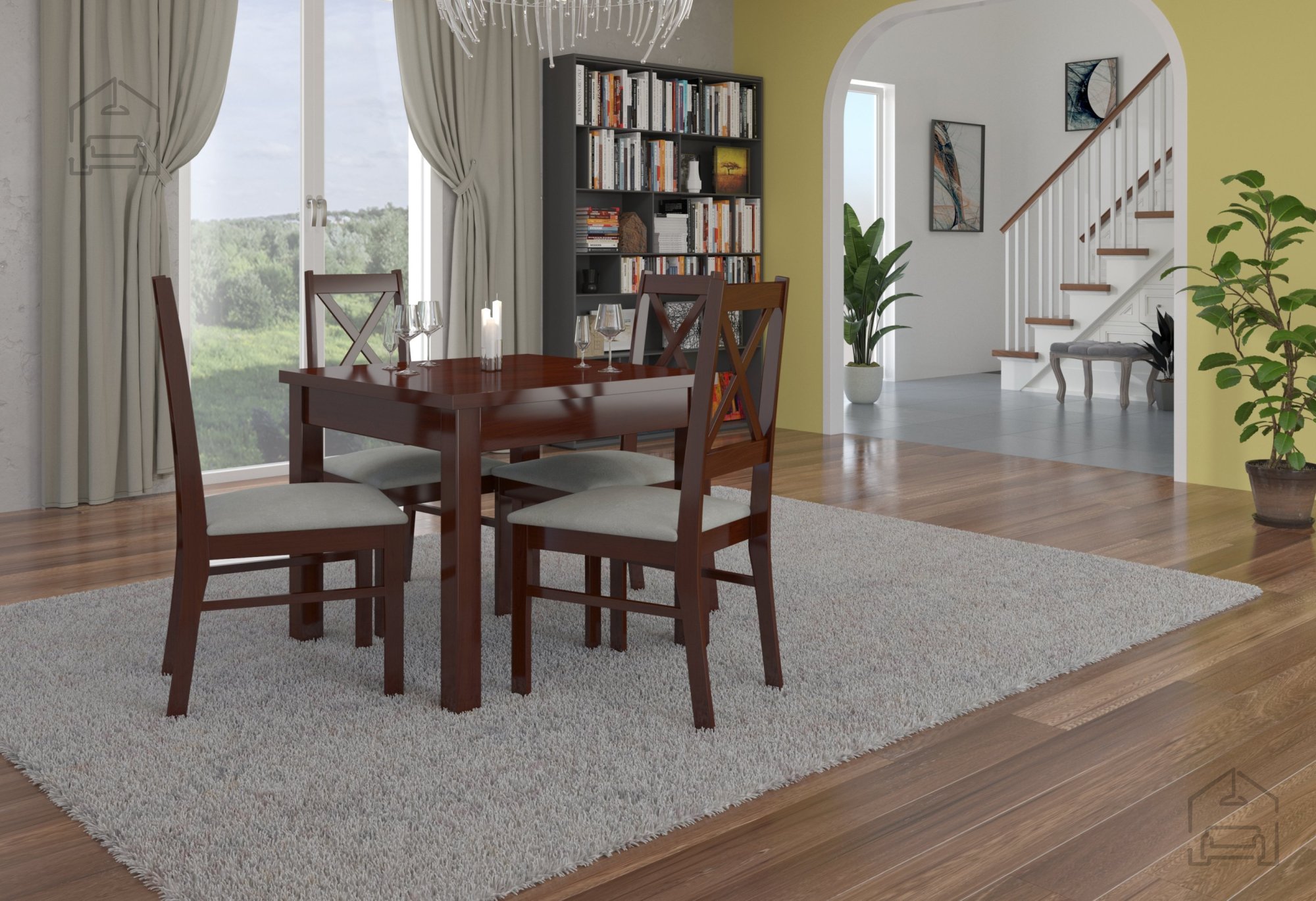 Das Esszimmer-Set Rodos 38 besteht aus robustem MDF in Kombination mit massivem Buchenholz, was Stabilität, Langlebigkeit und eine lange Lebensdauer garantiert. Die Oberfläche ist in drei Farbtönen erhältlich – dunkle Walnuss, Lefkas und Sonoma – und lässt sich damit perfekt an verschiedene Einrichtungsstile anpassen. Ob Sie die klassische Wärme von Holz bevorzugen oder den modernen, minimalistischen Stil – dieses Set fügt sich harmonisch in jedes Ambiente ein.