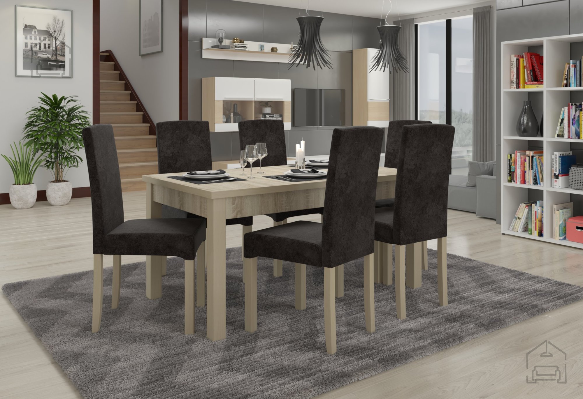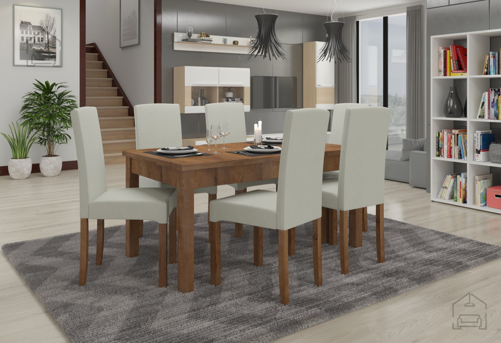 Schaffen Sie eine gemütliche und stilvolle Atmosphäre in Ihrem Esszimmer mit einem Set, das Funktionalität, modernes Design und die natürliche Wärme von Holz vereint. Die Kombination aus hochwertigem MDF-Rahmen und massivem Buchenholz sorgt für ausgezeichnete Stabilität und Langlebigkeit und verleiht Ihrem Zuhause zugleich eine elegante Note. Erhältlich ist das Set in mehreren Farbtönen – von klassischem dunklem Nuss und Erle bis hin zu modernen Varianten wie Sonoma, Craft Gold und Lefkas – so lässt es sich mühelos an Ihren Einrichtungsstil anpassen.