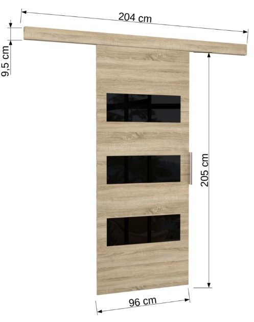Das Türblatt misst 96 x 205 cm, der Rahmen 204 x 9,5 cm. Diese Standardmaße ermöglichen eine einfache Anpassung an die meisten Wandöffnungen und eine unkomplizierte Montage. Die weiße Oberfläche verleiht dem Raum Helligkeit und ein Gefühl von Weite – perfekt für kleinere Räume, in denen man optisch mehr Großzügigkeit schaffen möchte.