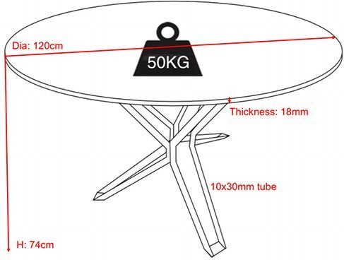 • Das Metallgestell des Tisches hat eine Stärke von 0,12 cm und ist schwarz pulverbeschichtet.