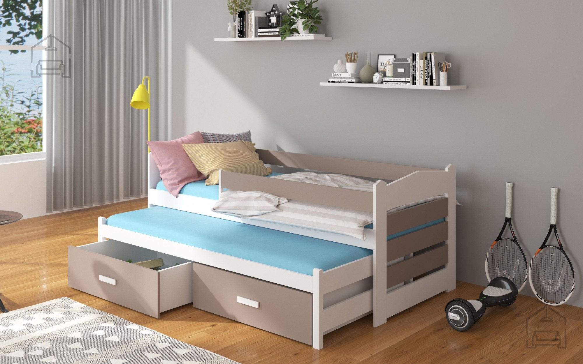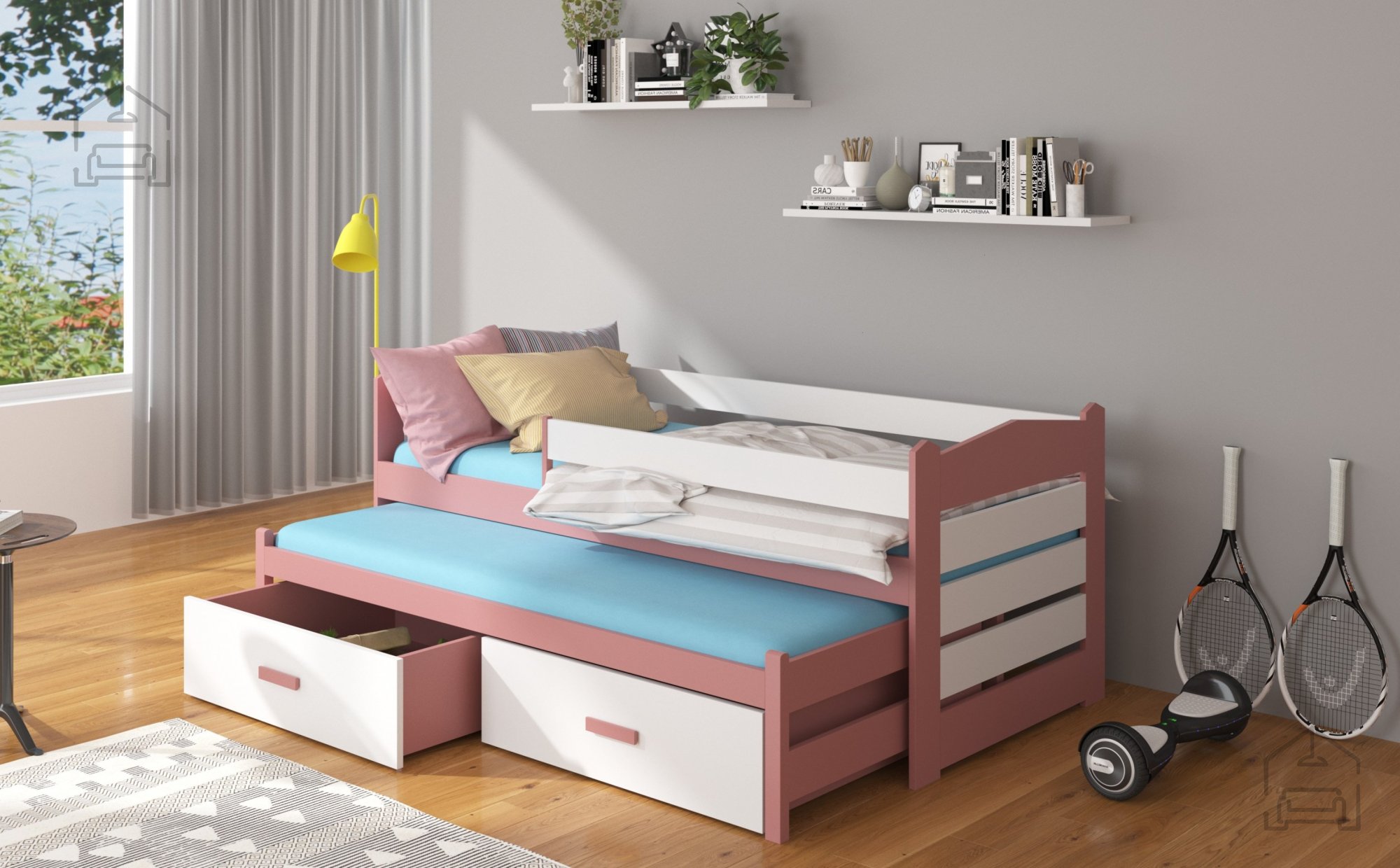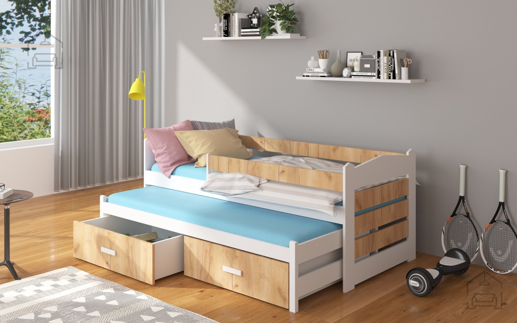 Das Kinderbett Tiarro mit Gitter – ADRK vereint Sicherheit, Funktionalität und ein ansprechendes Design. Es ist ideal für Eltern, die ihrem Kind ein hochwertiges Bett aus natürlichem Holz mit praktischen Lösungen für den Alltag bieten möchten. Die stabile Konstruktion, die großzügigen Schubladen und das Sicherheitsgitter machen es zu einer der beliebtesten Optionen für Kinderzimmer. Dank der vielfältigen Farbvarianten lässt es sich leicht an jeden Raum anpassen und schafft eine wohnliche, warme Atmosphäre.