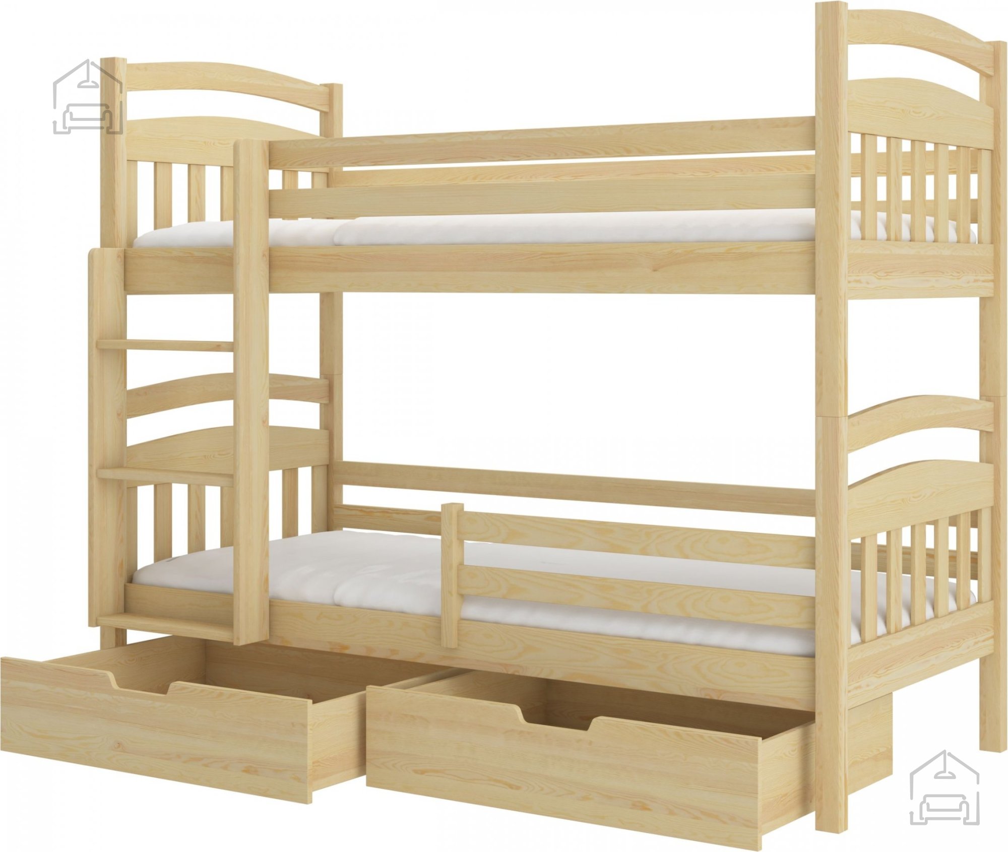 Wenn Sie im Kinder- oder Jugendzimmer mehr Platz, Funktionalität und die warme Ausstrahlung von natürlichem Holz schaffen möchten, ist dieses Etagenbett die perfekte Wahl. Sein durchdachtes Design verbindet Komfort, Sicherheit und ansprechende Optik und sorgt gleichzeitig für eine optimale Raumnutzung. Die Liegefläche misst 80x180 cm – ideal für Kinder, Jugendliche oder auch Gäste. Gefertigt aus hochwertigem massivem Kiefernholz, überzeugt das Bett durch seine Robustheit und die natürliche Schönheit des Holzes, die dem Raum eine behagliche Atmosphäre verleiht.