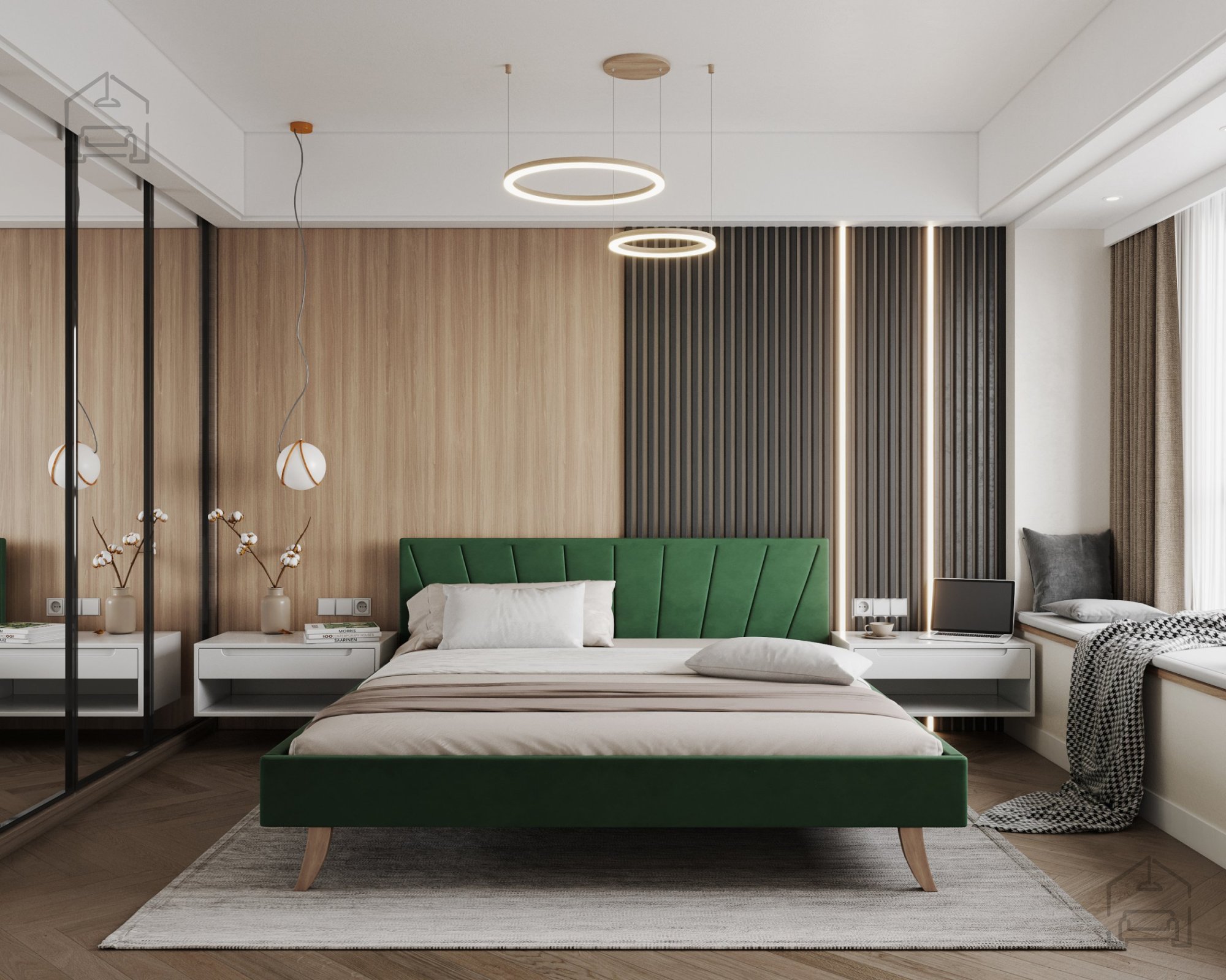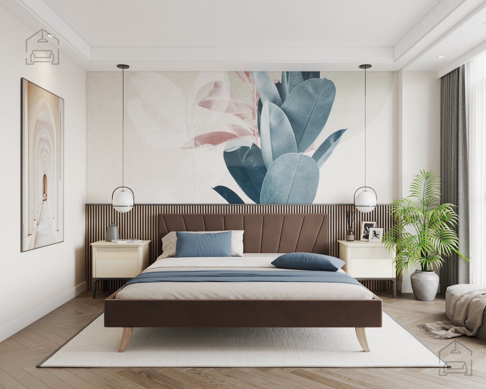 Das Bett Heaven fügt sich sowohl in modern als auch klassisch eingerichtete Schlafzimmer schön ein. Seine klaren Linien und leicht abgerundeten Kanten wirken beruhigend, während die Möglichkeit, mehrere Farben zu wählen, erlaubt, es perfekt mit anderen Möbelstücken, Textilien oder der Beleuchtung im Raum abzustimmen. In kleineren Räumen werden hellere Farbtöne empfohlen, die ein Gefühl von Geräumigkeit vermitteln, während in größeren Räumen dunklere Stoffe schön hervorstechen und die Eleganz und Tiefe des Raumes betonen.