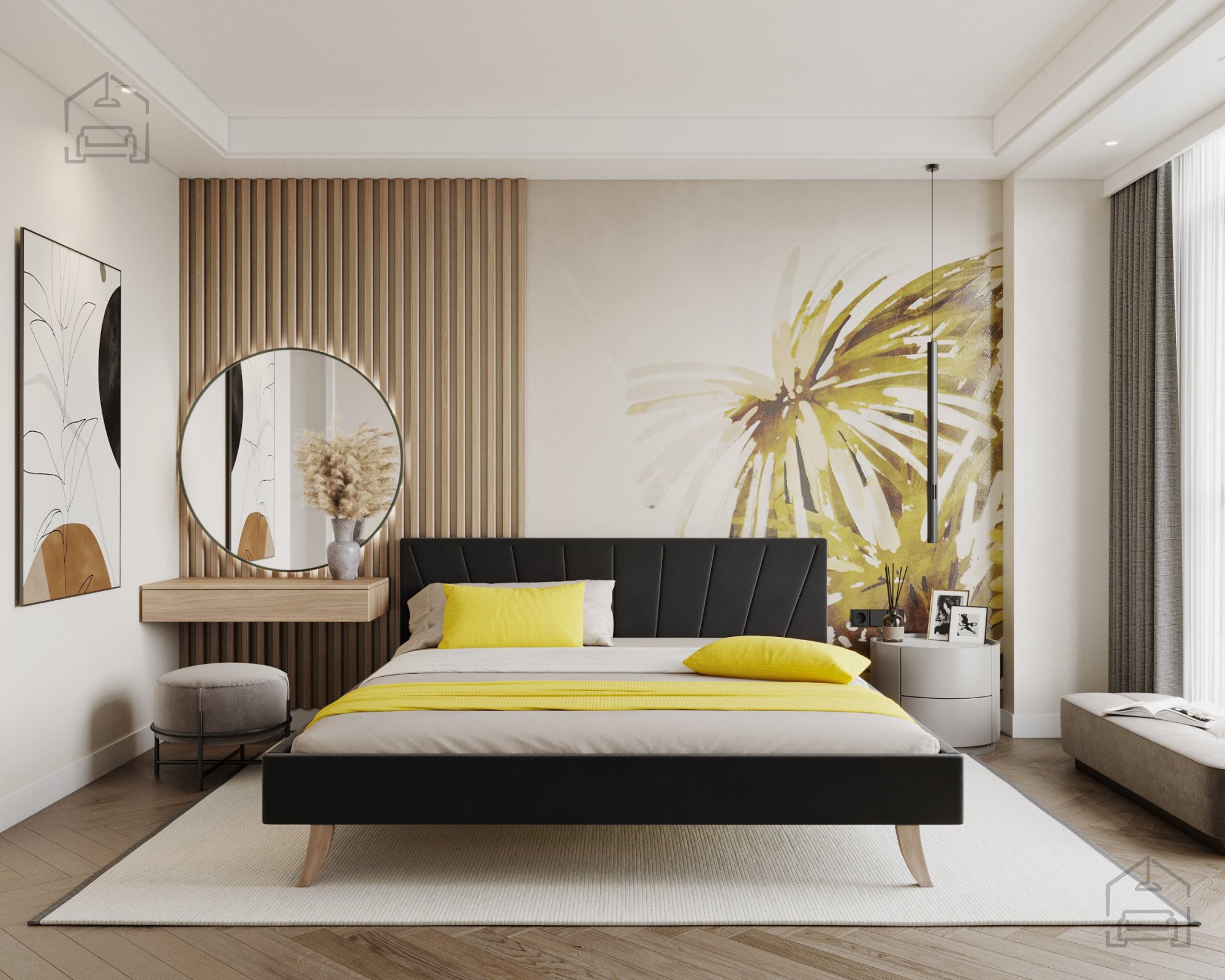 Die Basis des Bettes Heaven besteht aus einer Kombination von hochwertigem Holz, Spanplatte und T-25-Schaumstoff. Dieser Schaum sorgt für ein ausgewogenes Verhältnis zwischen Weichheit und Unterstützung, sodass sich der Rahmen nicht verformt und seine Form auch nach längerem Gebrauch beibehält. Die Holzfüße bieten Stabilität und sind gleichzeitig ein ästhetisches Detail, das die gepolsterte Oberfläche ergänzt. Aufgrund seines Designs enthält das Bett keinen Hebemechanismus, keine Lattenroste und keine Bettzeugschublade, was ihm ein sauberes, minimalistisches Aussehen ohne zusätzliche Elemente verleiht.