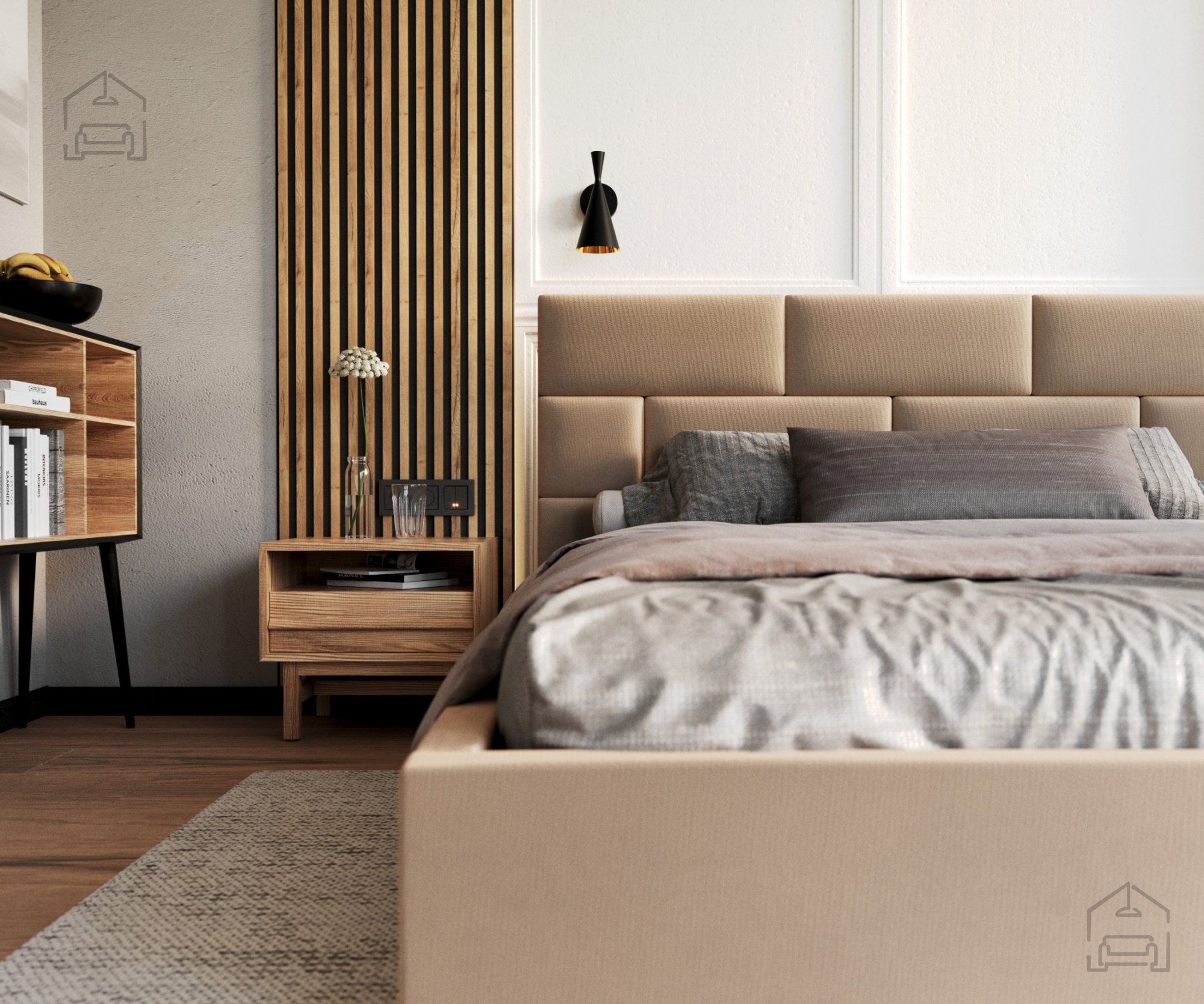 Das Kopfteil und der vordere Bettrahmen sind mit horizontalen Steppnähten versehen, was dem Bett ein elegantes, modernes Erscheinungsbild verleiht. Der gepolsterte Rahmen ist in verschiedenen Farben und Stoffen erhältlich und lässt sich harmonisch an unterschiedliche Einrichtungsstile anpassen – von minimalistisch bis klassisch. Unabhängig von der Farbwahl unterstreicht das horizontale Steppmuster die Form und verleiht dem Bett einen markanten Charakter.