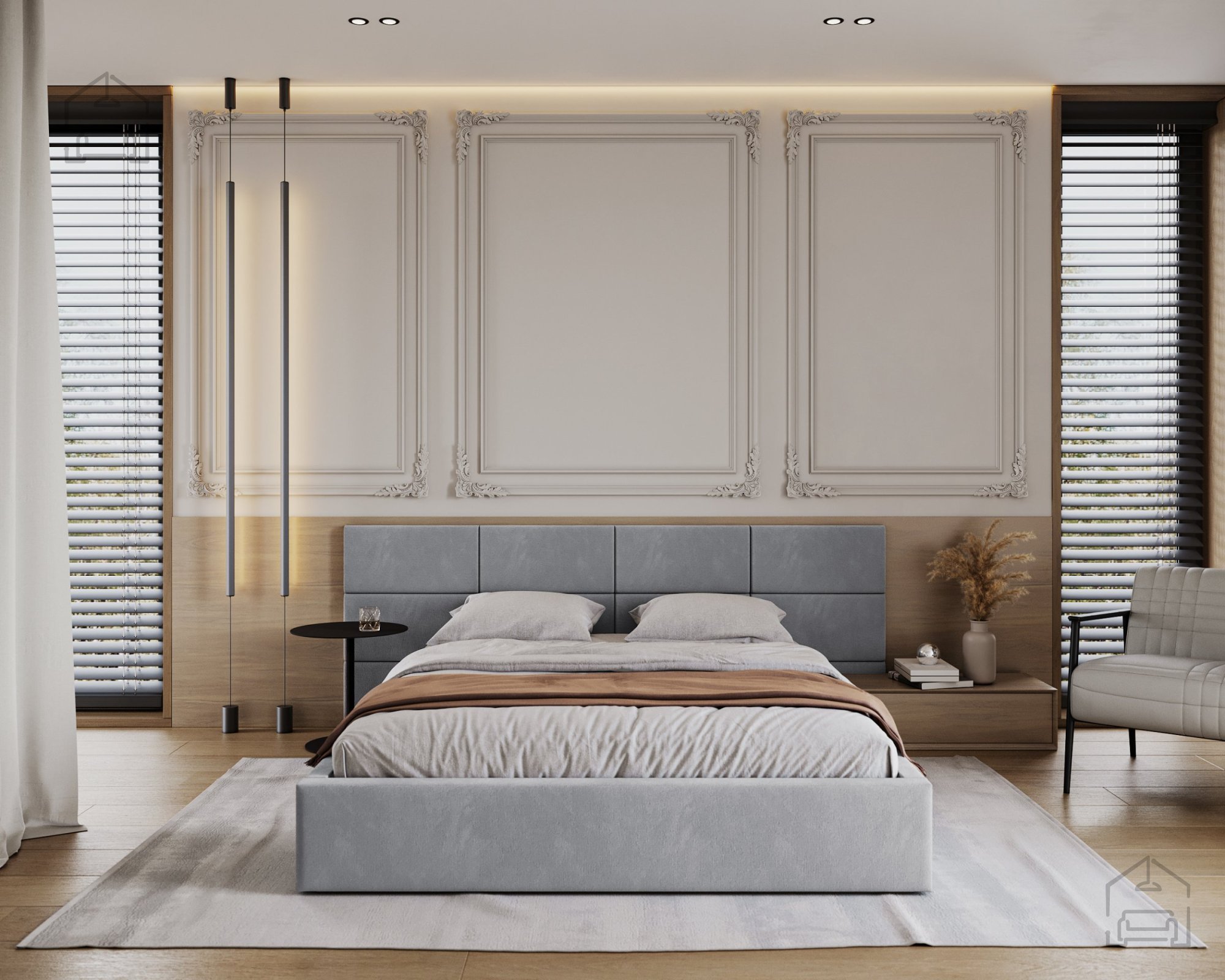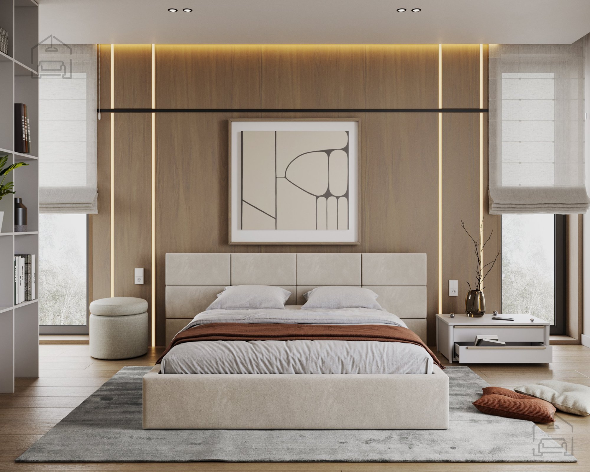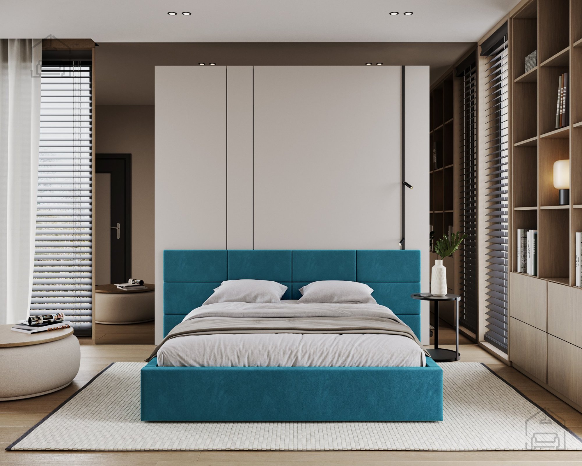 Ein besonderes Merkmal des Bettes Denver ist das aus Würfeln bestehende Kopfteil, das direkt an der Schlafzimmerwand montiert werden muss. Ein solcher modularer Ansatz ermöglicht mehr Freiheit bei der Gestaltung des Erscheinungsbildes des Bettes und des Raumes. Die Würfel dienen nicht nur als dekoratives Element, sondern auch als weiche Stütze beim Lesen oder Fernsehen im Bett.