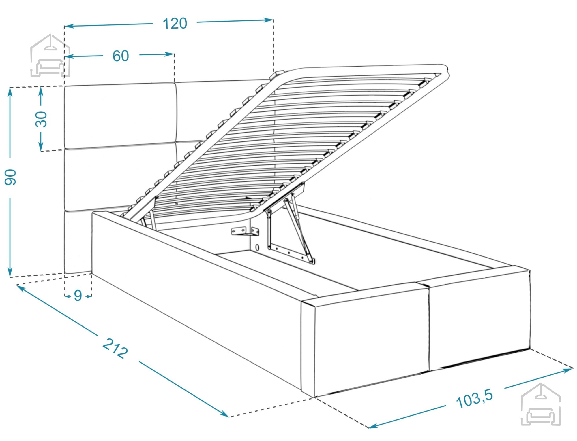 Die Liegefläche ist anpassbar, da sie von 90 bis 180x200 cm misst, was eine Auswahl zwischen verschiedenen Breiten je nach Raumgröße ermöglicht. Die Höhe der Liegefläche beträgt 30 cm, was einen bequemen Zugang und eine optimale Höhe zum Aufstehen und Liegen gewährleistet.