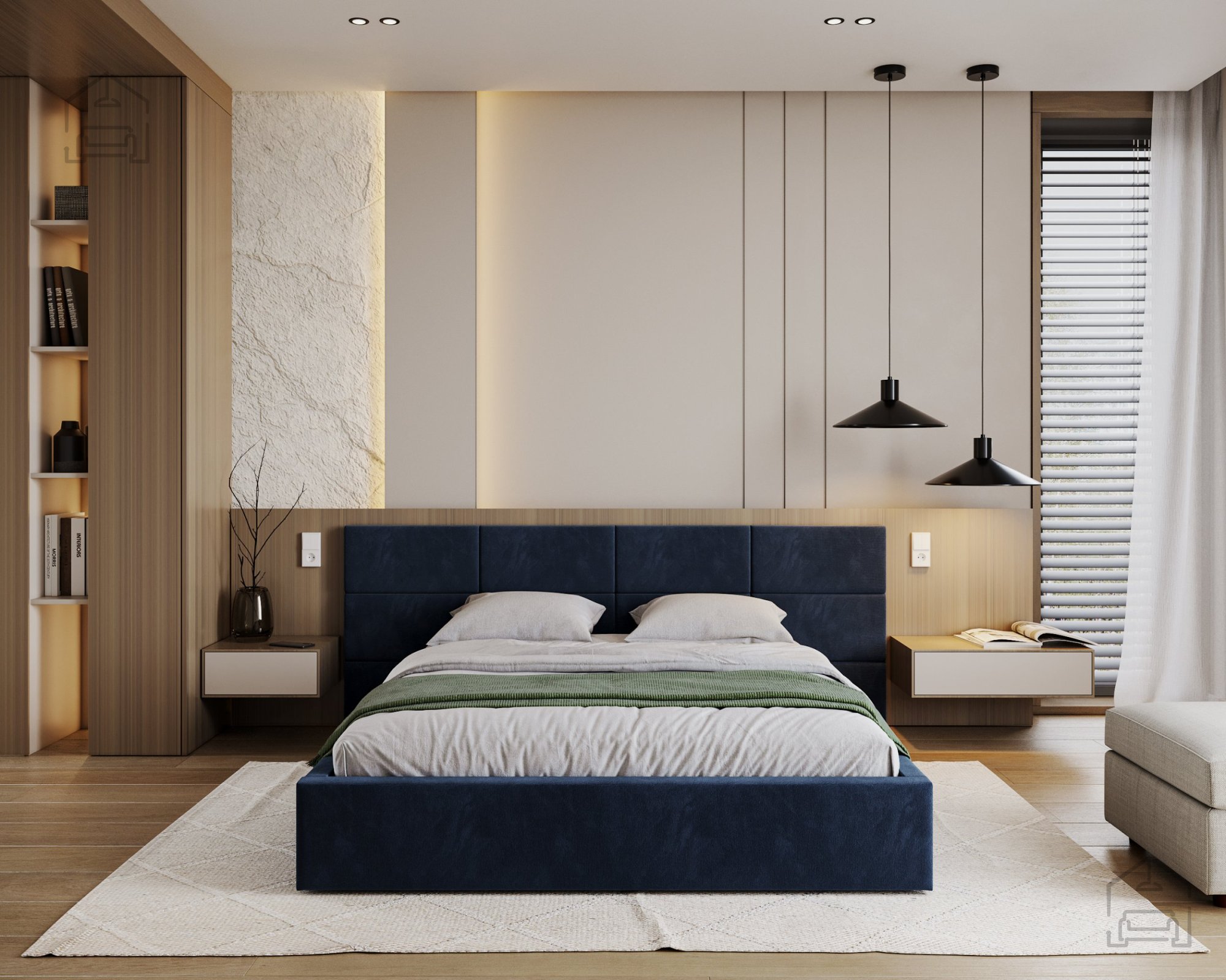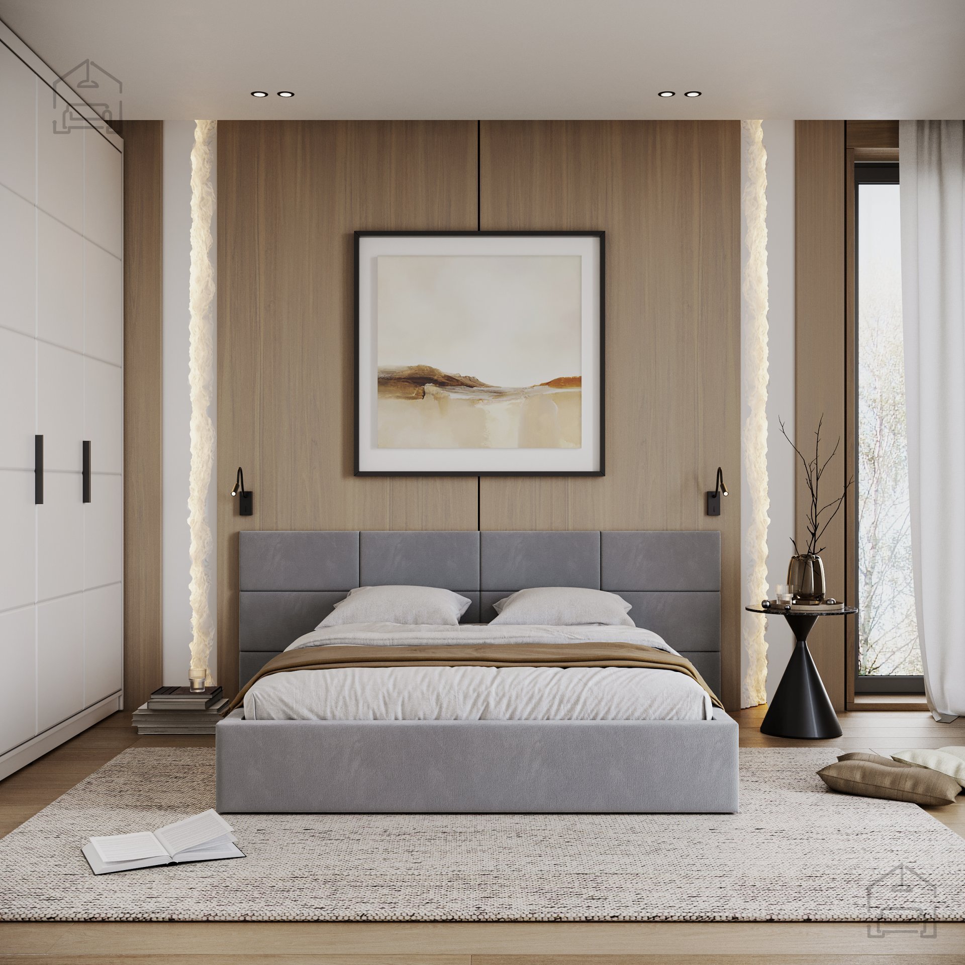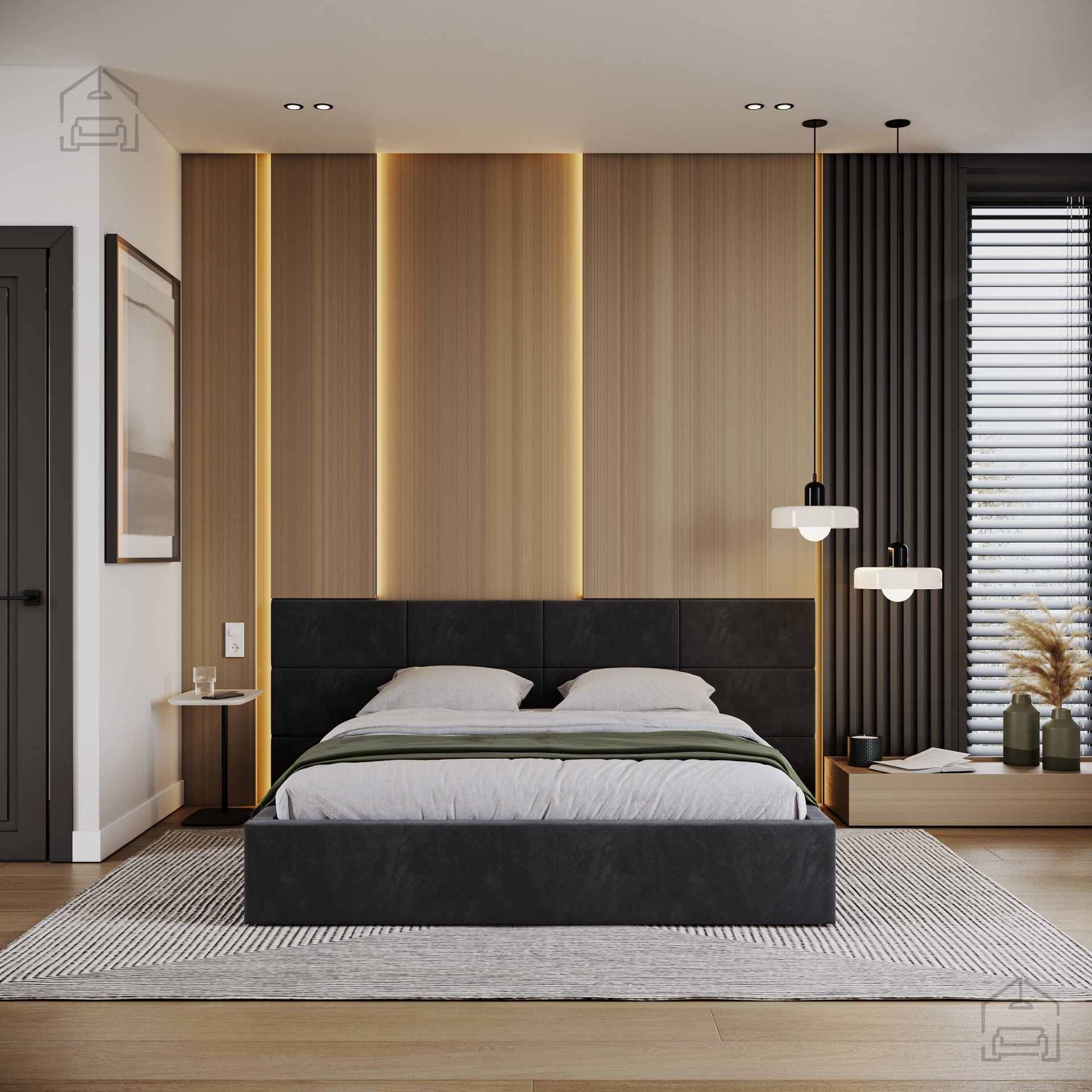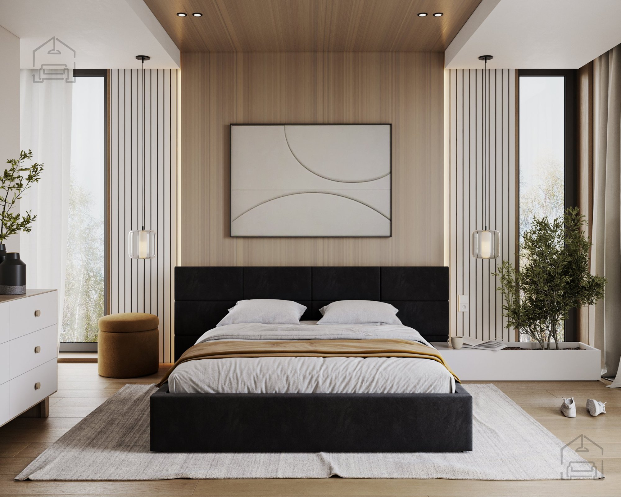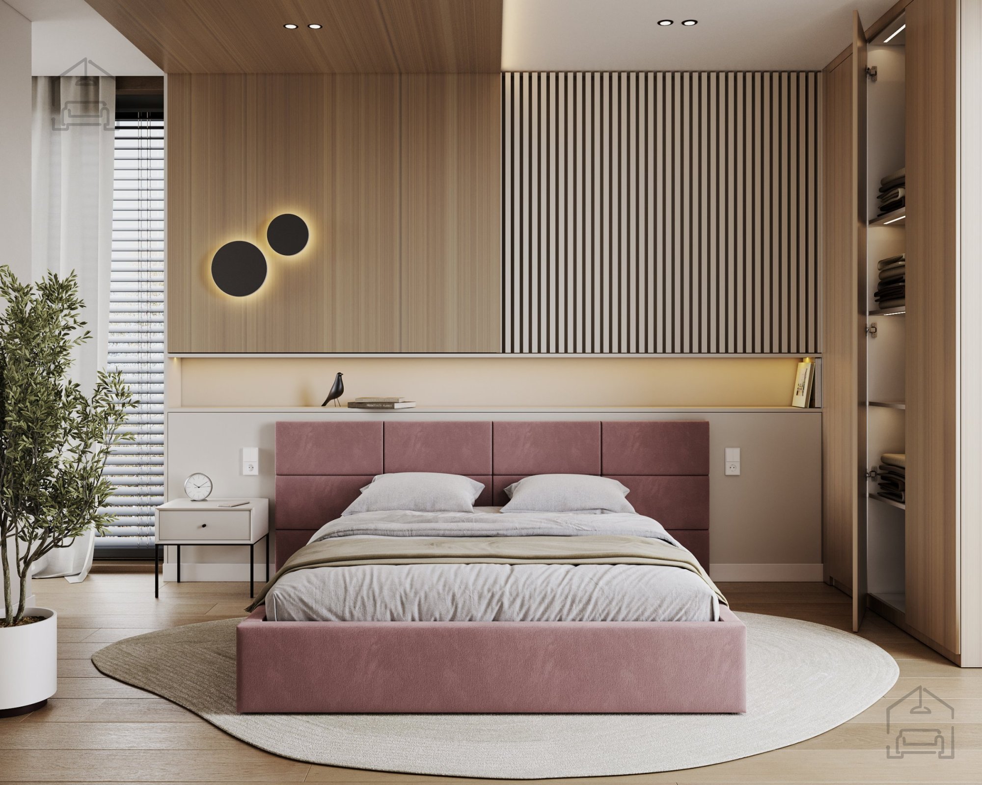 Ein besonderes Merkmal des Bettes Denver ist das aus Würfeln bestehende Kopfteil, das direkt an der Schlafzimmerwand montiert werden muss. Ein solcher modularer Ansatz ermöglicht mehr Freiheit bei der Gestaltung des Erscheinungsbildes des Bettes und des Raumes. Die Würfel dienen nicht nur als dekoratives Element, sondern auch als weiche Stütze beim Lesen oder Fernsehen im Bett.