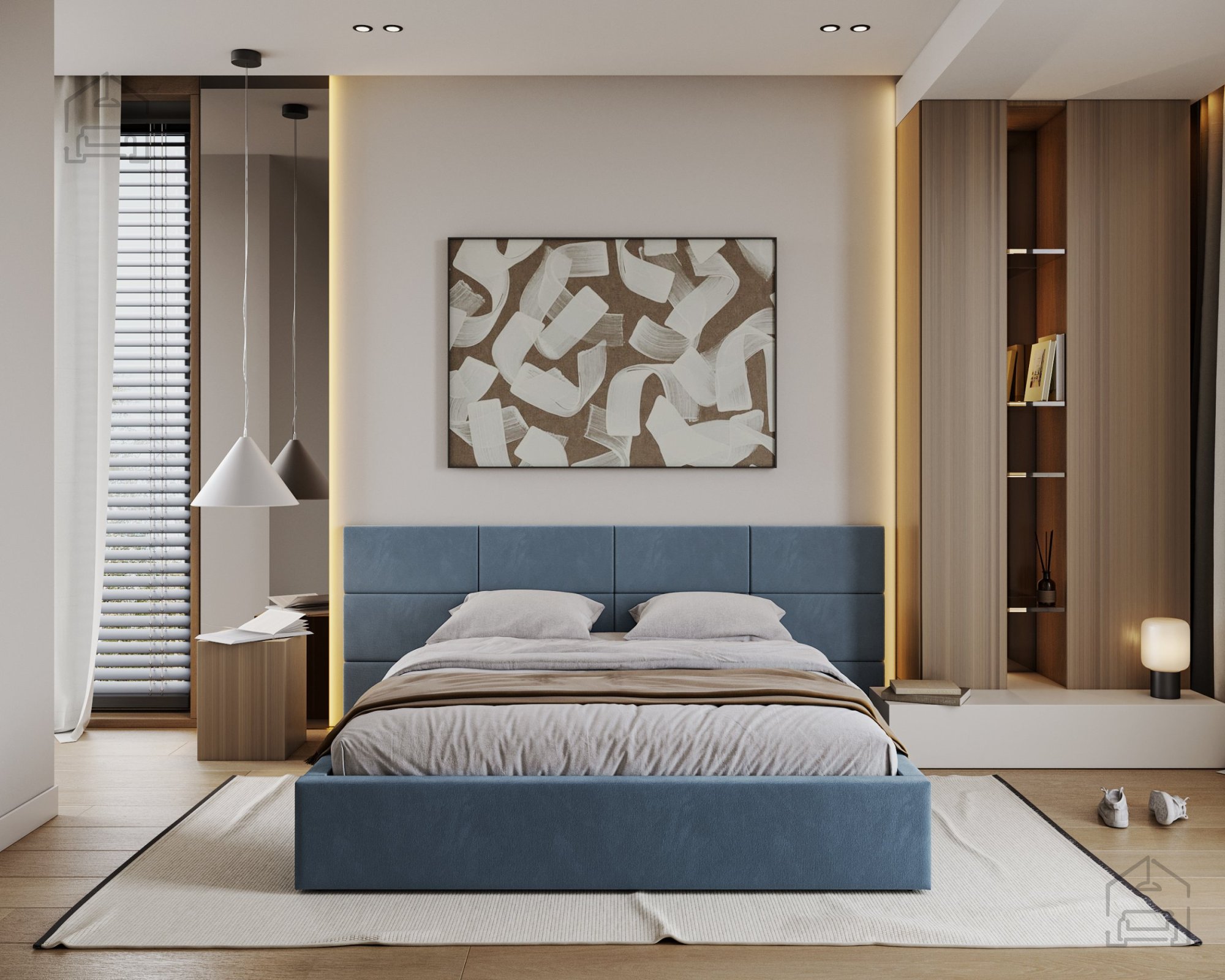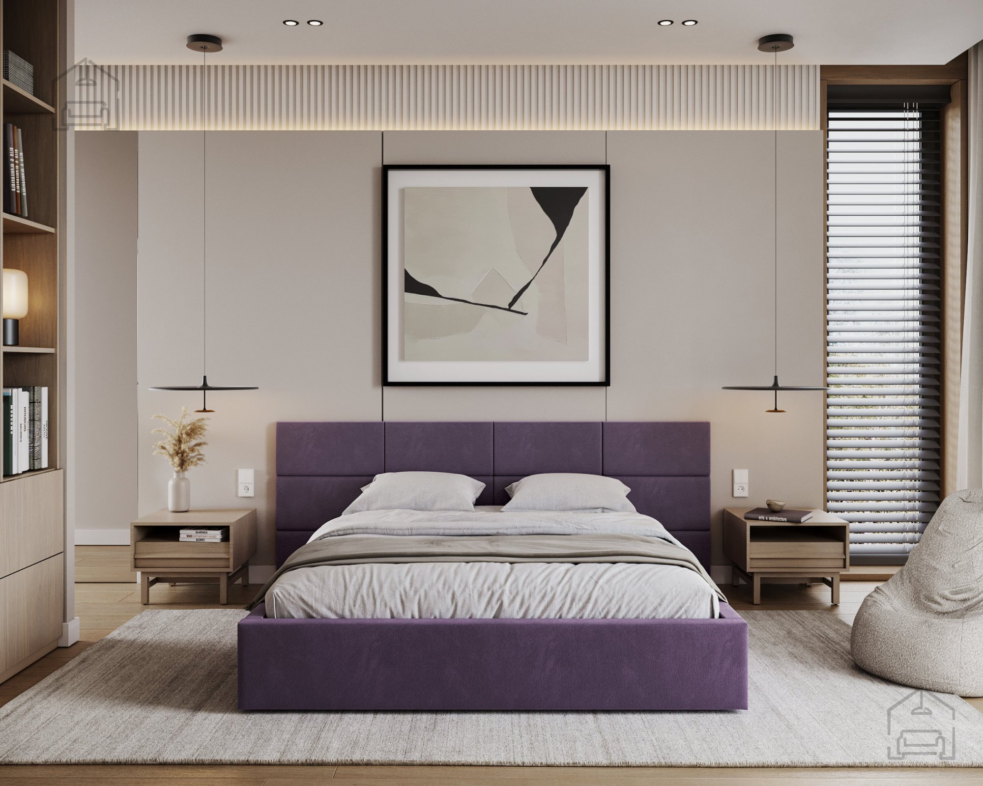 Ein besonderes Merkmal des Bettes Denver ist das aus Würfeln bestehende Kopfteil, das direkt an der Schlafzimmerwand montiert werden muss. Ein solcher modularer Ansatz ermöglicht mehr Freiheit bei der Gestaltung des Erscheinungsbildes des Bettes und des Raumes. Die Würfel dienen nicht nur als dekoratives Element, sondern auch als weiche Stütze beim Lesen oder Fernsehen im Bett.