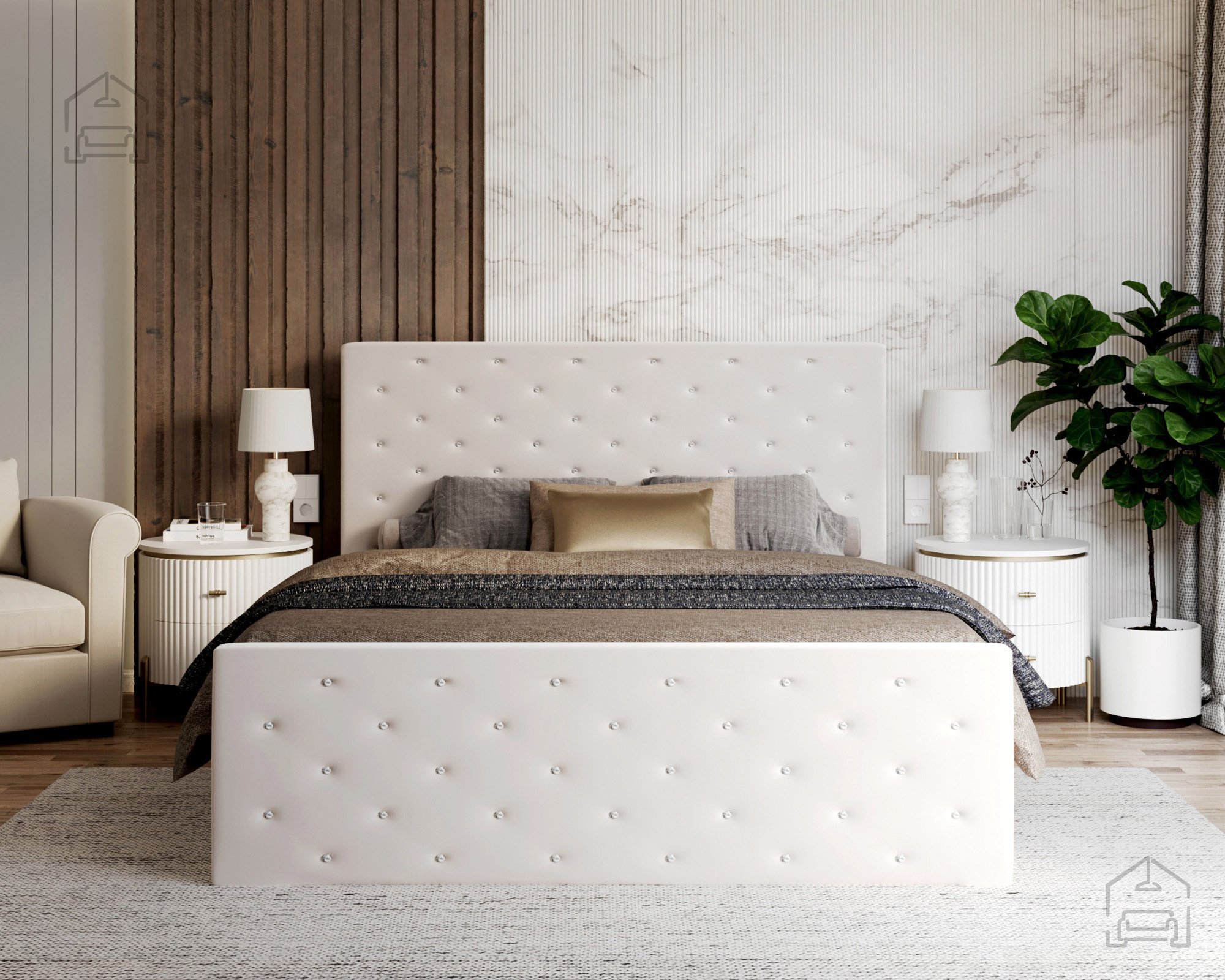 Das Bett Passion passt sich verschiedenen Schlafzimmerstilen mühelos an. Ob in hellen Stofffarben für ein luftiges Ambiente oder in dunkleren Tönen für eine gemütliche Atmosphäre – seine Form bleibt stets modern und stilvoll. Die weiche Polsterung vermeidet harte Kanten und erhöht das Gefühl von Sicherheit und Behaglichkeit im Raum.
