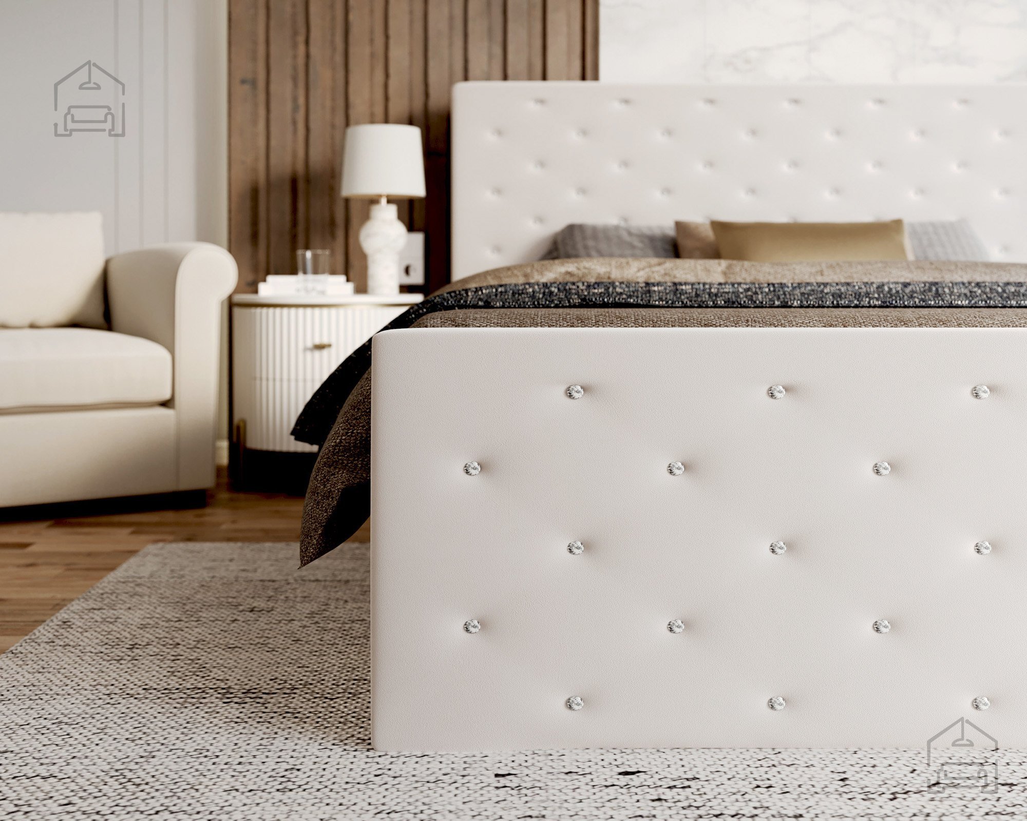 Die stabile Struktur und das hochwertige Polster sorgen für zuverlässige Unterstützung bei gleichzeitig angenehmer Weichheit. Diese Kombination ist ideal für den täglichen Gebrauch, da sie ein ausgewogenes Verhältnis zwischen Stabilität und Komfort bietet. Das Bett ist kein Boxspringmodell, sodass die Matratze individuell nach bevorzugtem Härtegrad und Füllung gewählt werden kann.
