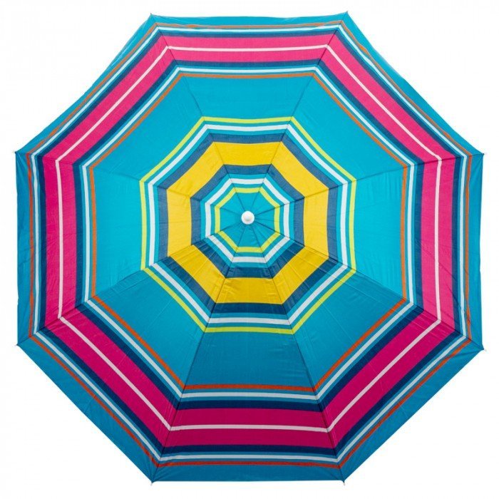 Das Nylonmaterial zeichnet sich durch eine gute UV-Beständigkeit aus, sodass Farbe und Struktur auch nach mehreren Saisonen erhalten bleiben. Der Schirm ist in verschiedenen Farben erhältlich und lässt sich so problemlos mit anderen Gartenmöbeln oder Strandaccessoires kombinieren.