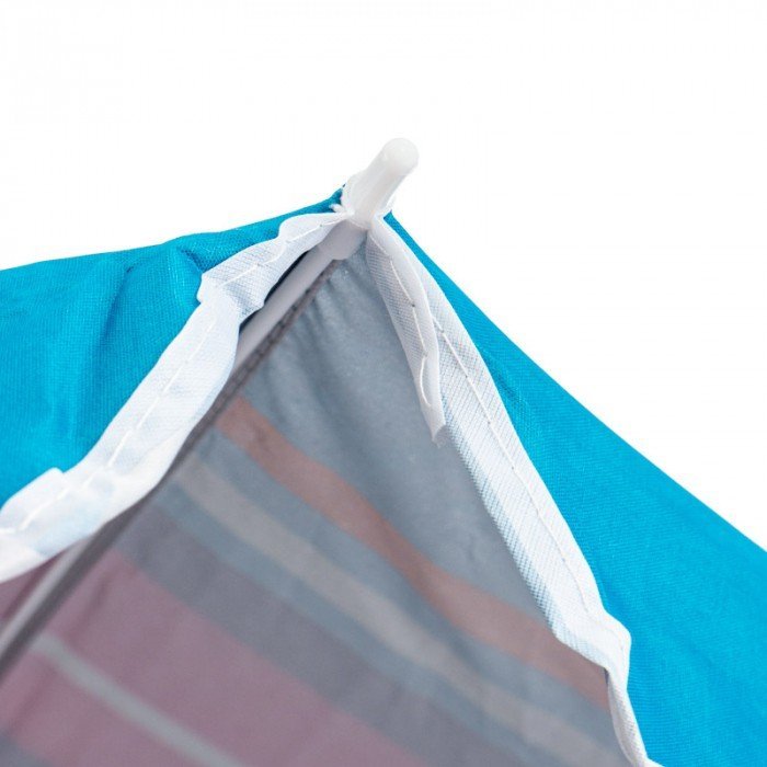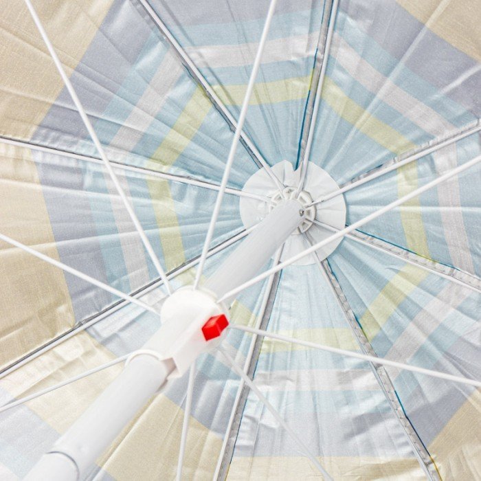 Das Grundgestell des Schirms besteht aus hochwertigem Stahl, der für die nötige Stabilität sorgt und dennoch ein relativ geringes Gewicht beibehält – ideal für einfaches Tragen und Aufstellen. Der Stahlrahmen ist formstabil und bleibt auch bei leichtem Wind zuverlässig standfest. Das Nylondach ist leicht, trocknet schnell und lässt sich mühelos reinigen – perfekt für den Einsatz in der Nähe von Wasser oder überall dort, wo Feuchtigkeit und Sand vorkommen können.