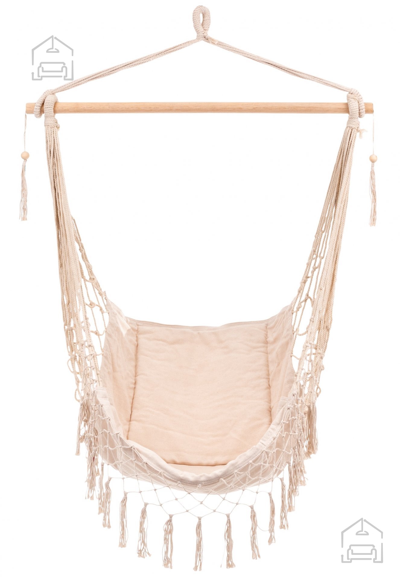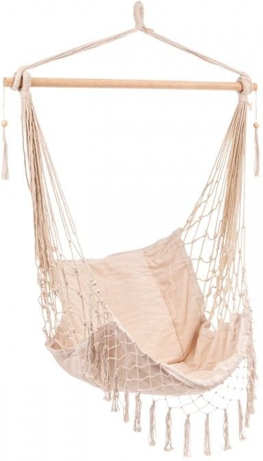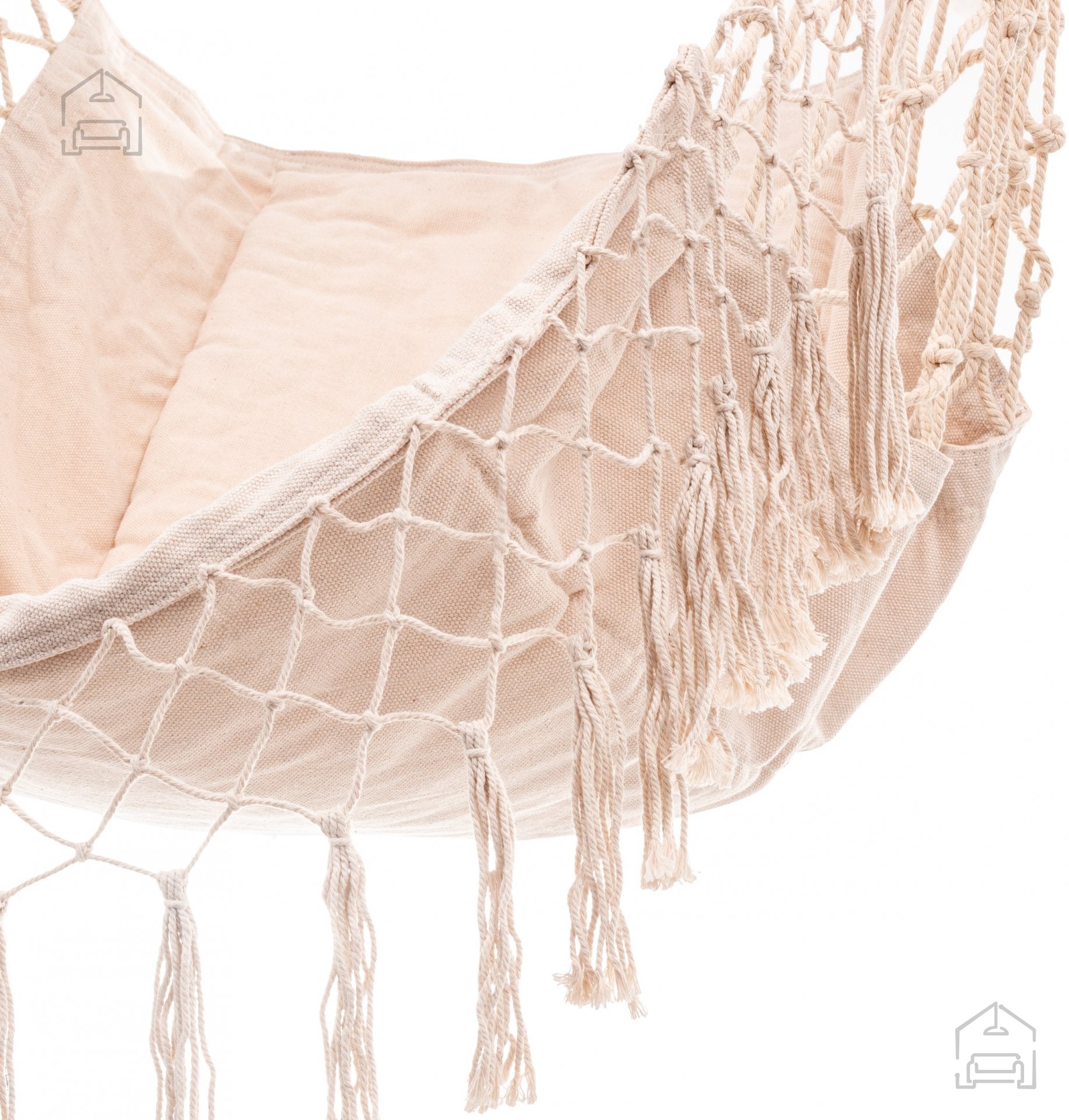 Das Design im Boho-Stil vermittelt ein Gefühl von Freiheit, Leichtigkeit und Kreativität. Die dekorativen Fransen am Rand verleihen dem Stück einen handgearbeiteten Charakter, sodass diese Hängematte nicht nur praktisch, sondern auch ein ansprechendes Dekoelement ist. Der Beigeton lässt sich wunderbar mit anderen Textilien wie Kissen, Überwürfen oder Teppichen in natürlichen Farben kombinieren – so entsteht eine harmonische Atmosphäre, die zum Entspannen und Zusammensein einlädt.