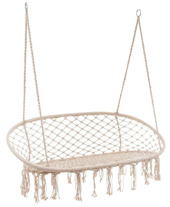 Der Brasil Hoop wurde mit besonderem Augenmerk auf Stabilität und Sicherheit entwickelt. Vier robuste geflochtene Seile verteilen das Gewicht gleichmäßig und sorgen für ein sicheres, angenehmes Schaukelerlebnis. Zwei runde Metallringe ermöglichen ein einfaches und sicheres Aufhängen an einer Tragekonstruktion, einem Gestell oder einem Deckenhaken. Die maximale Belastbarkeit beträgt bis zu 150 kg und ist somit für die meisten Erwachsenen geeignet.