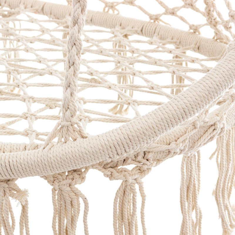 Der Hängesessel ist als ergonomischer Relaxsessel konzipiert, der den Körper in einer natürlichen, leicht gebogenen Position unterstützt. Die Baumwollfasern fühlen sich angenehm weich an, sind aber gleichzeitig stabil genug, um ihre Form auch bei häufiger Nutzung zu behalten. Durch die atmungsaktive Struktur des Materials entsteht kein Hitzestau, was besonders an heißen Sommertagen für angenehmes Sitzen sorgt.